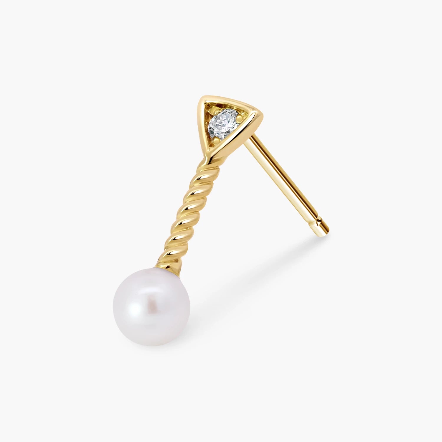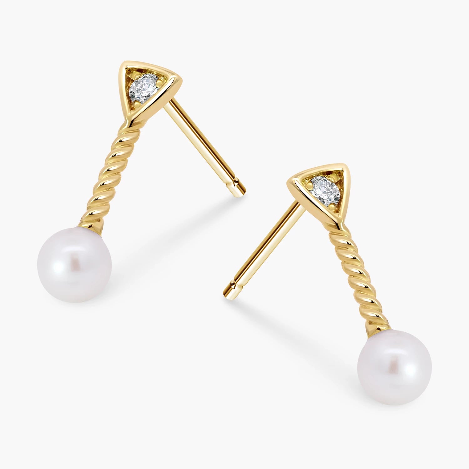 Elegant 14kt gold fresh water Pearl earrings set with two natural diamonds totalling 0.03ct, perfect for adding refined sparkle to any outfit.