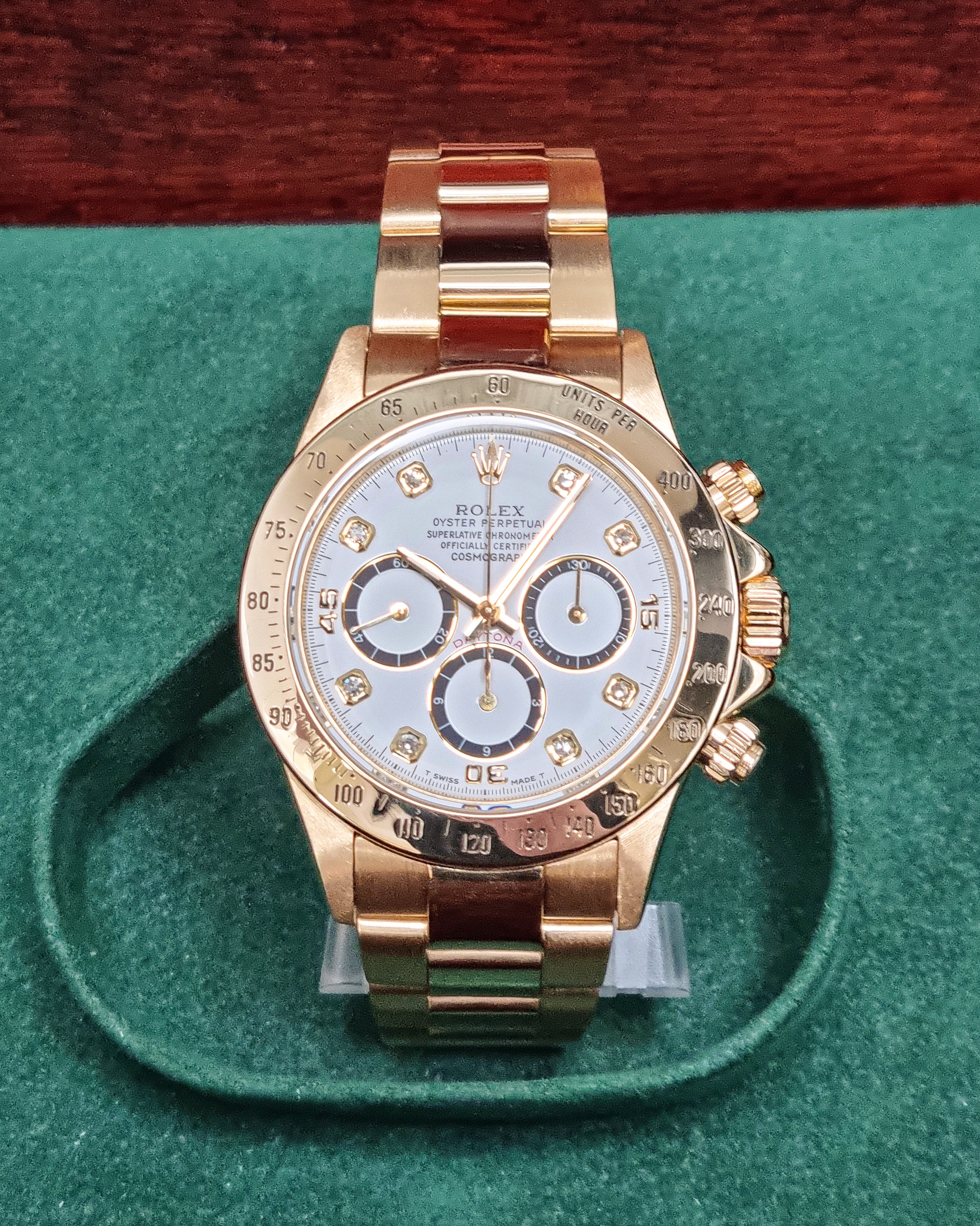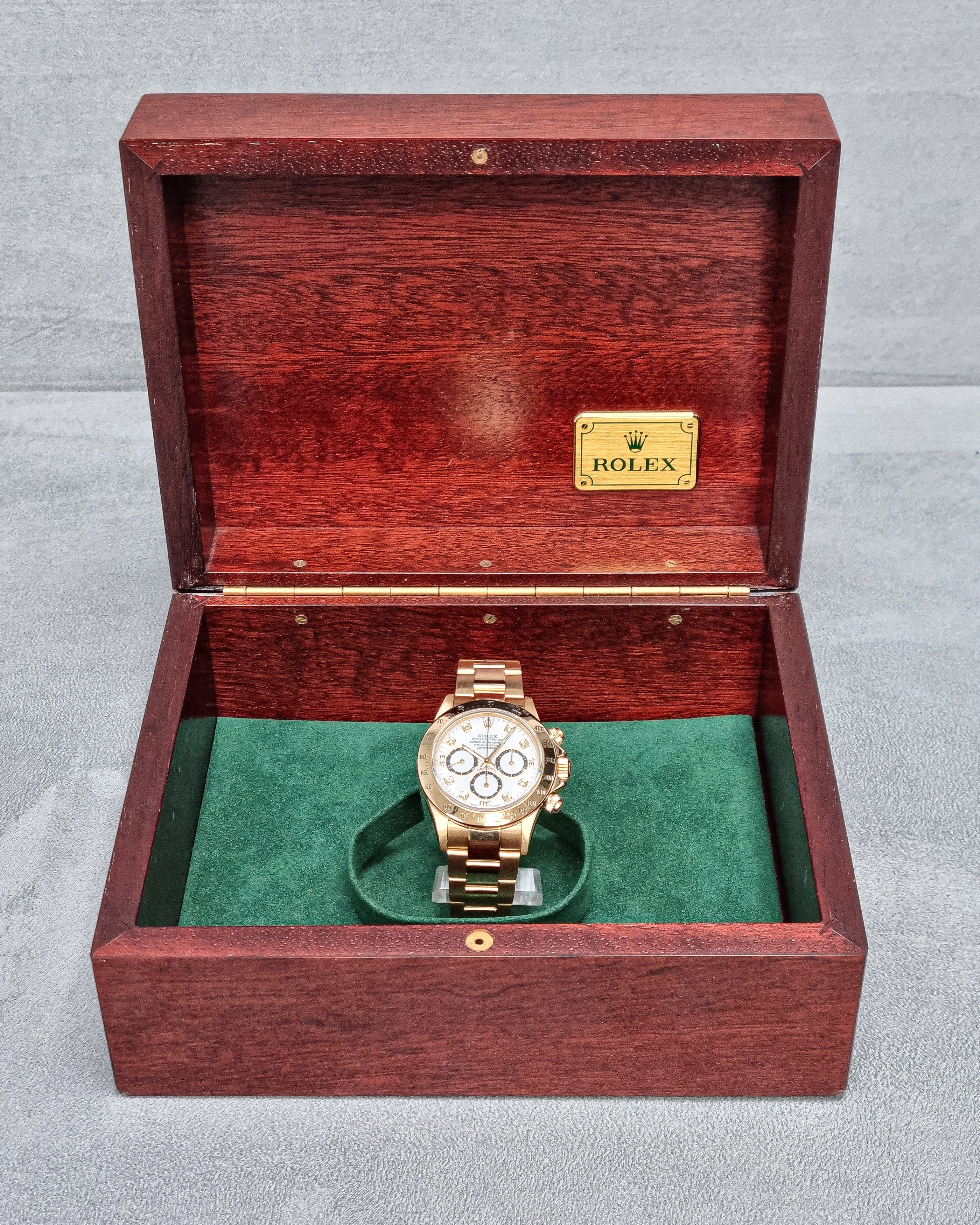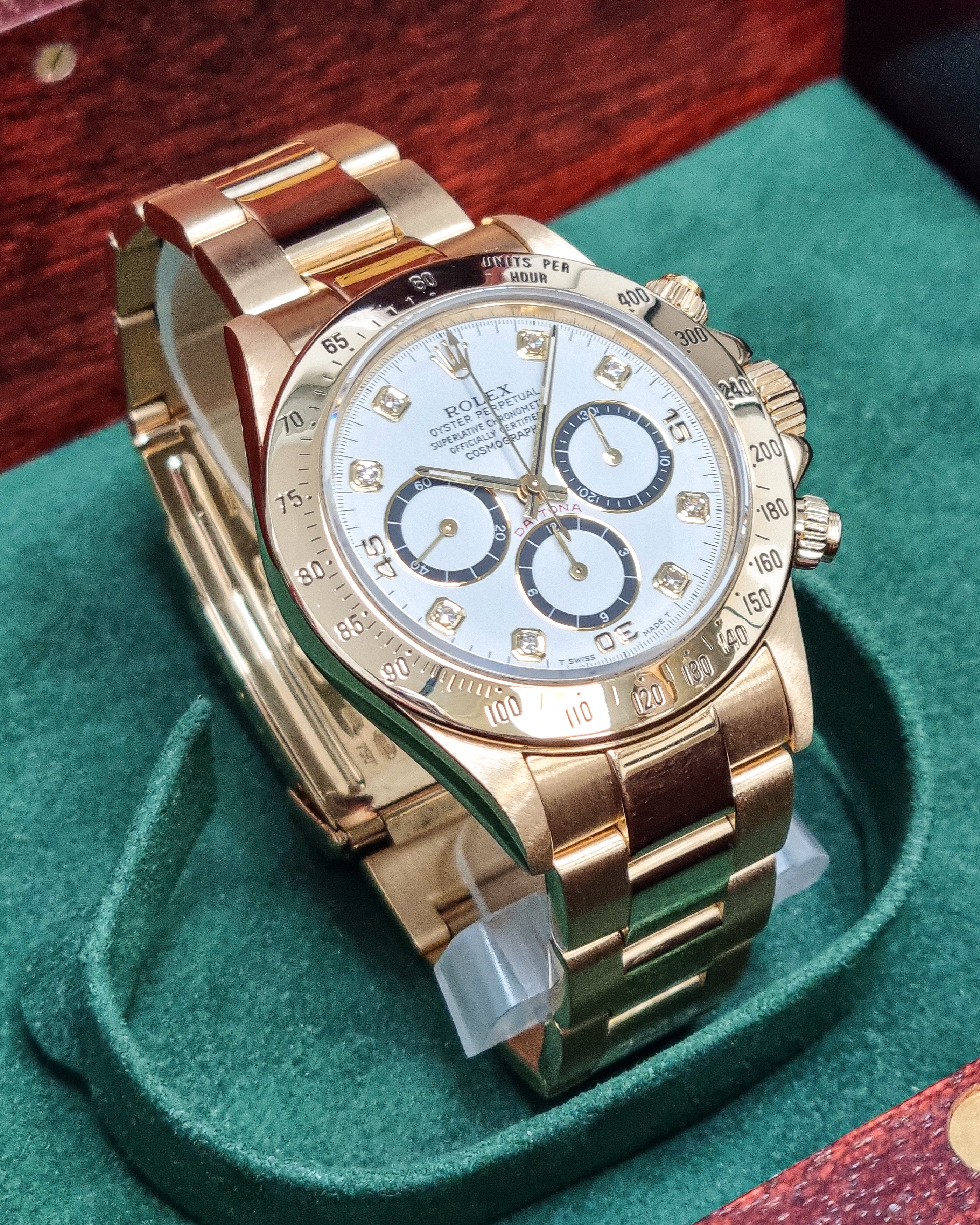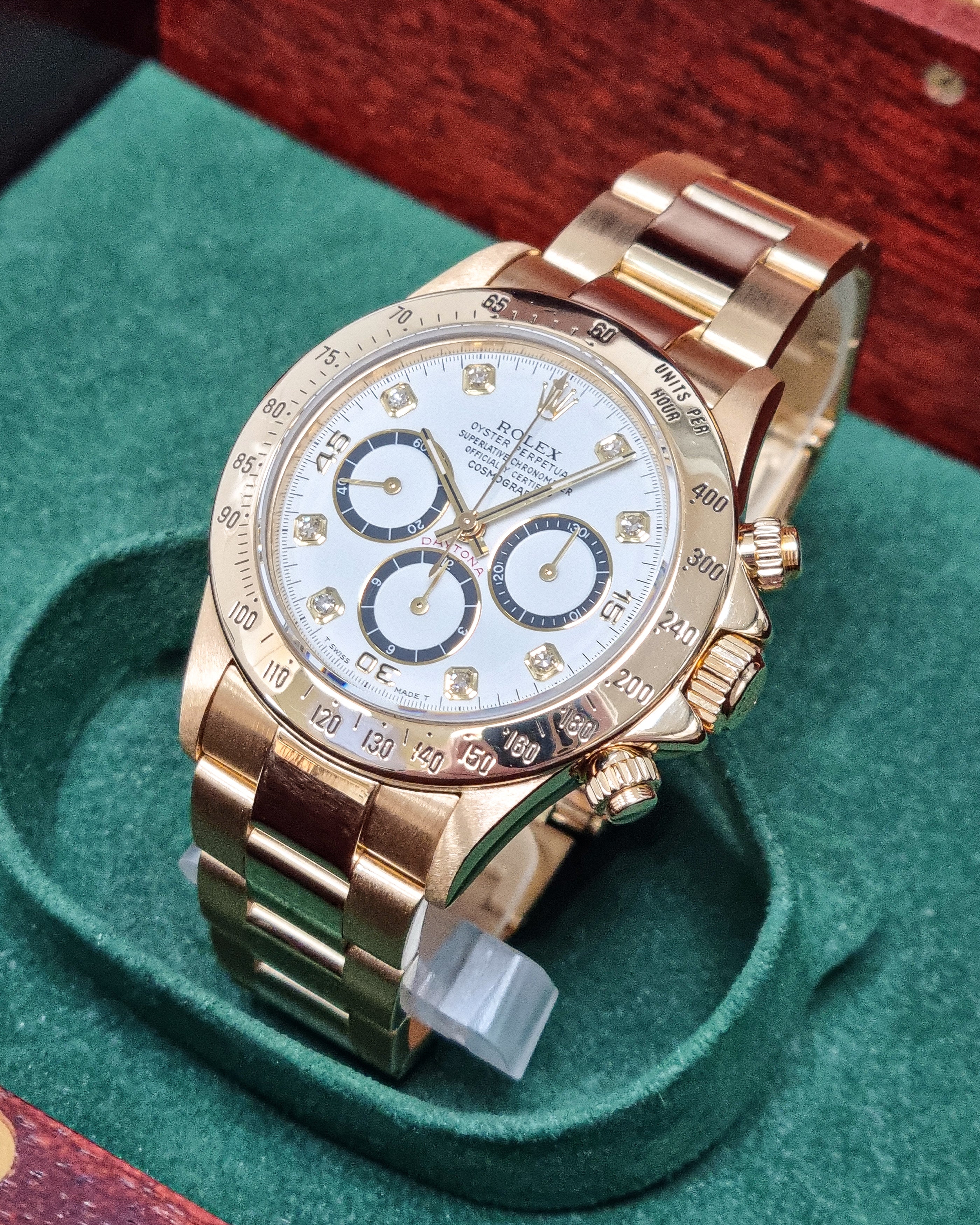Powered by a precise automatic movement, this Daytona combines Rolex’s racing heritage with timeless design. Supplied with box and presented in very good condition (papers not included).