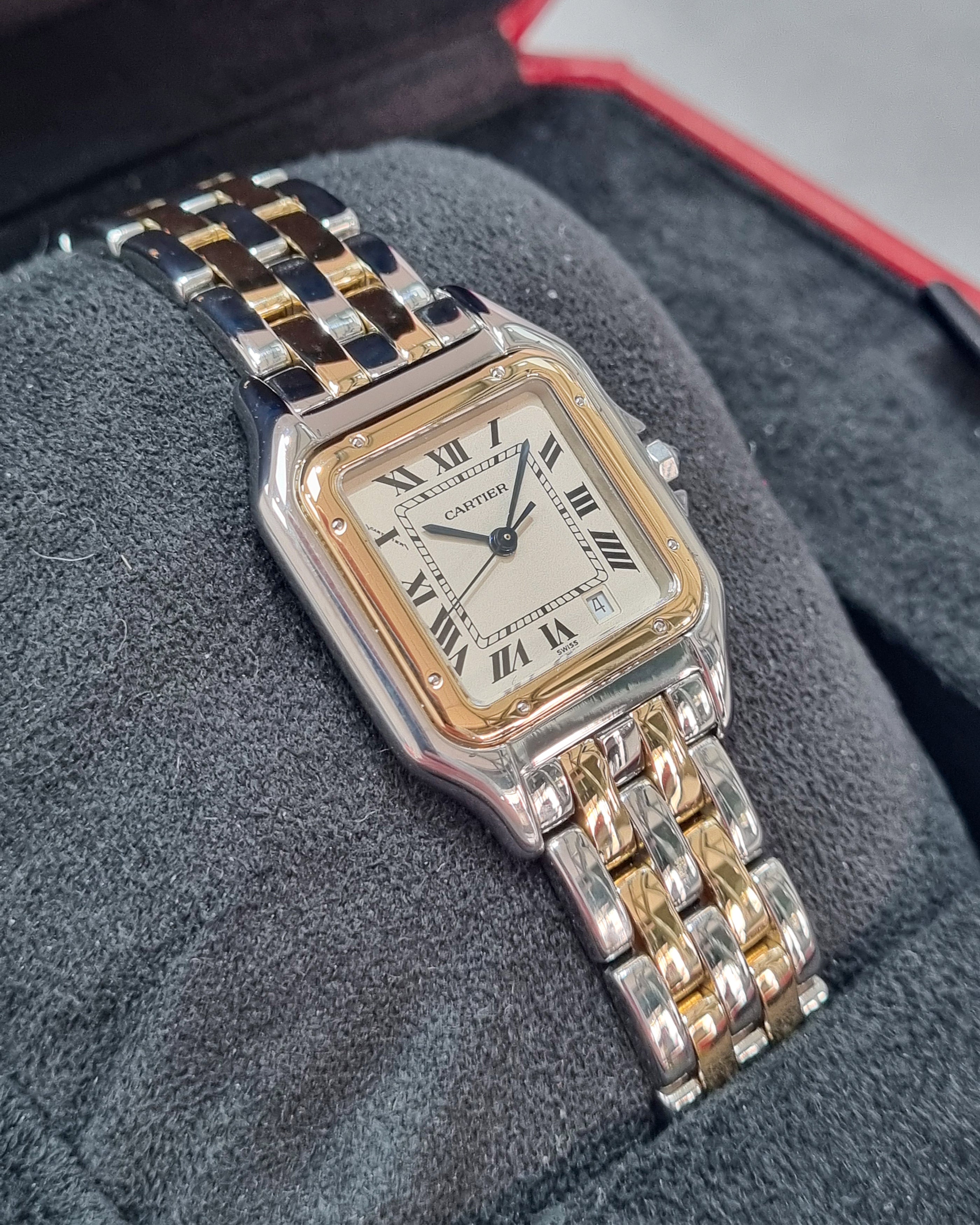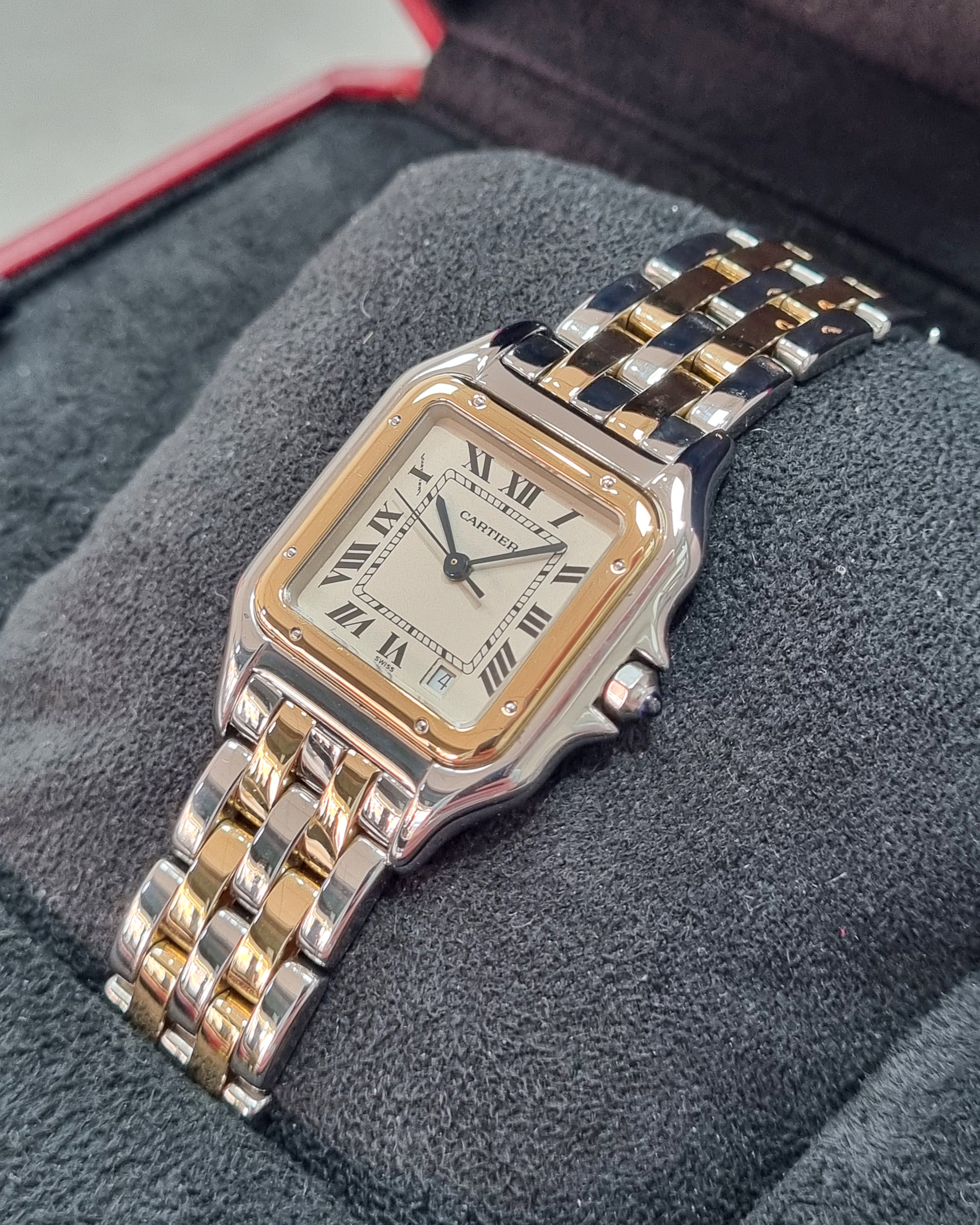 A timeless Cartier Panthère, combining elegant two-tone styling with classic design — perfect for collectors or refined everyday wear.