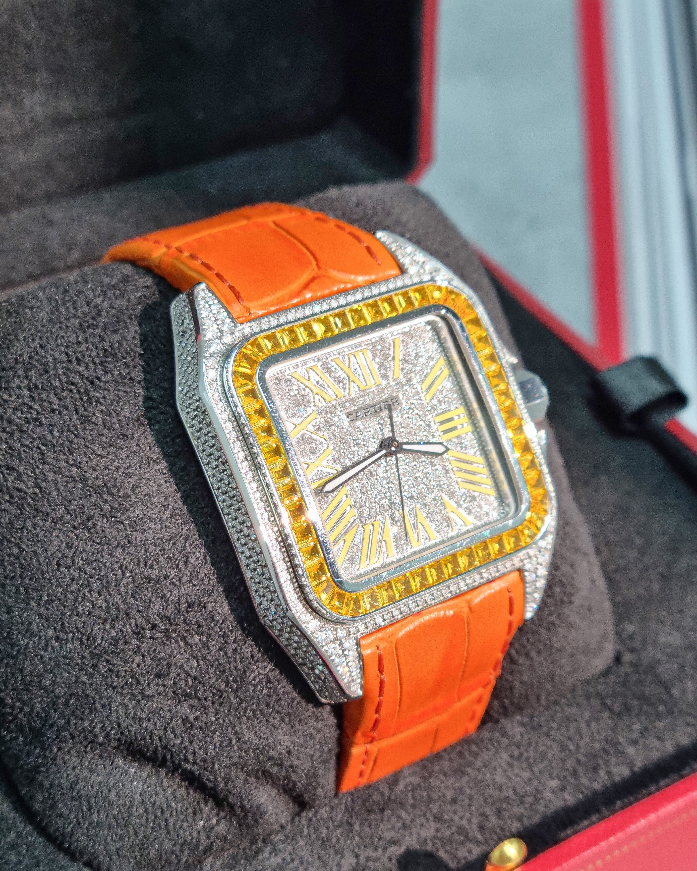 Dial Colour: Custom diamond with Orange Roman Numerals