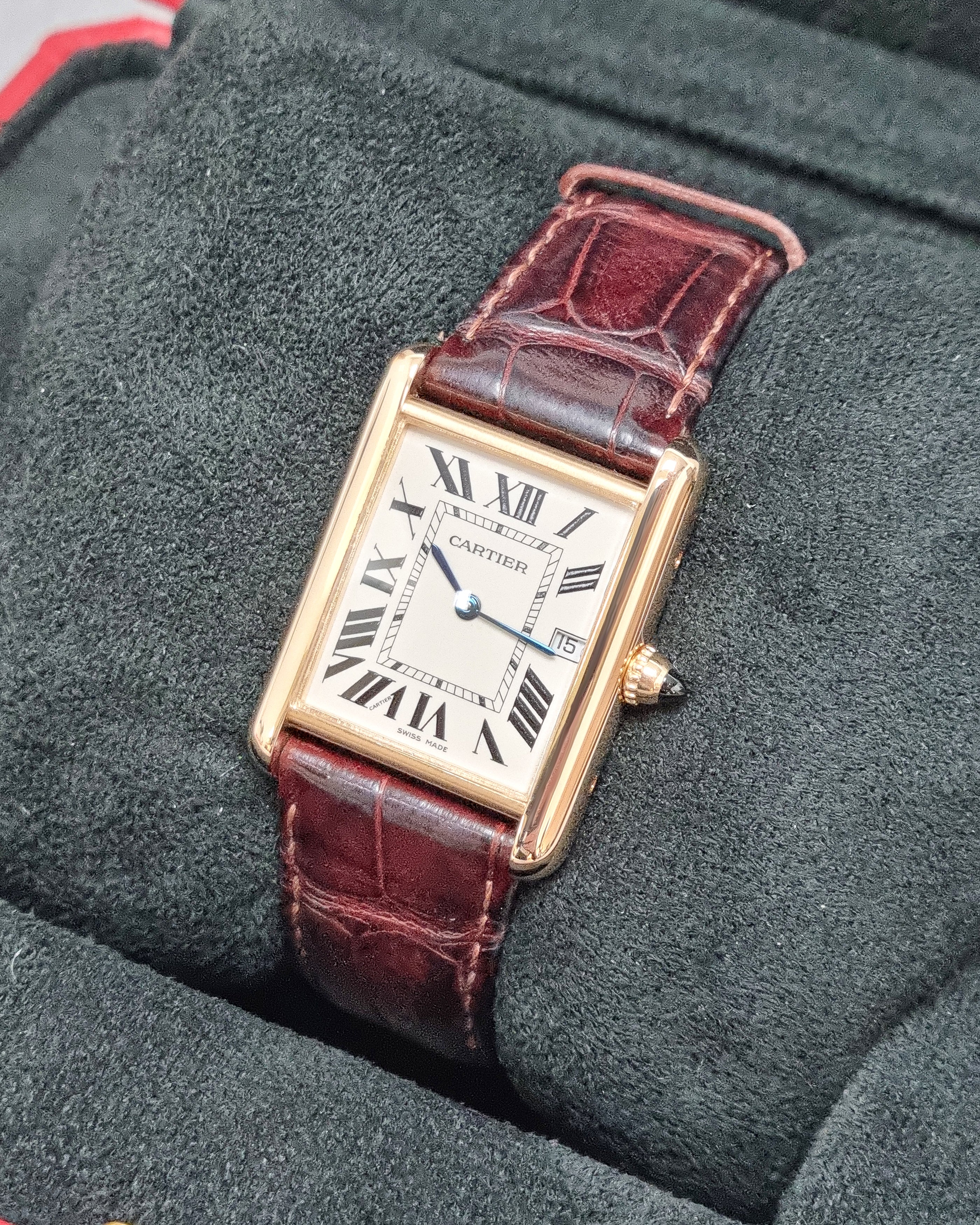 A quintessential Cartier dress watch, blending heritage design with understated luxury.