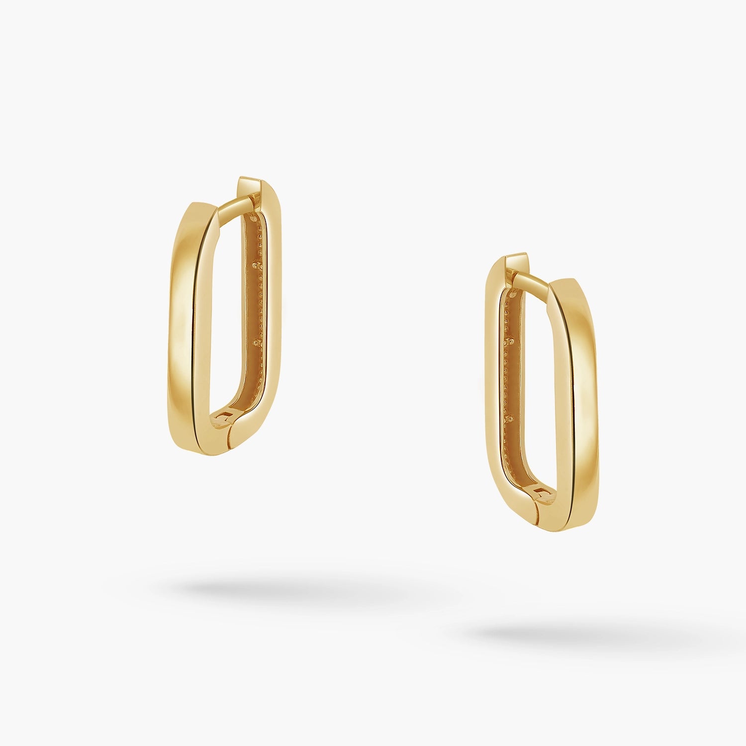 Minimalist 9kt yellow gold earrings in a soft rectangle shape with gently curved corners, polished to a refined shine. At 1.53g, they offer effortless elegance with a clean, modern silhouette.
