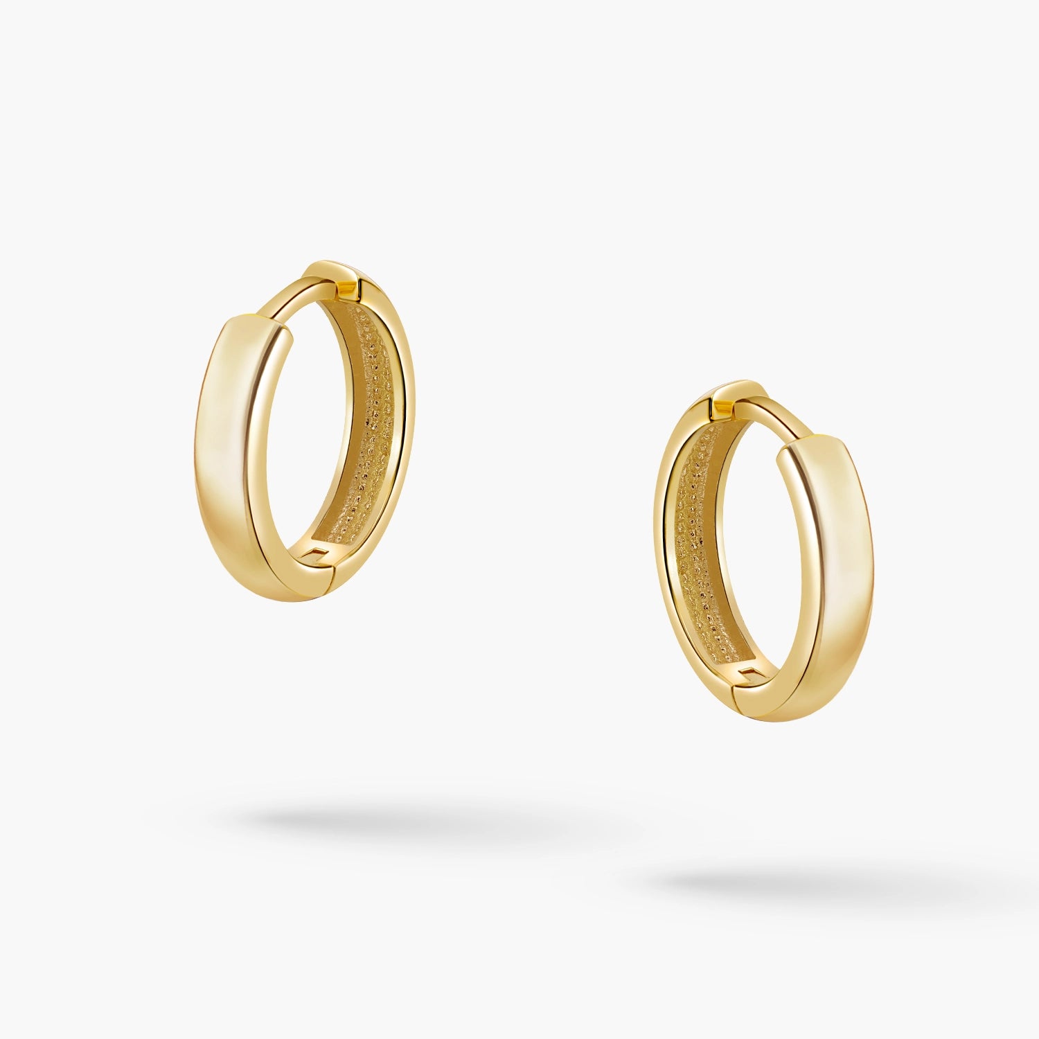 Classic 9kt yellow gold small hoop earrings, polished for a smooth, radiant finish. Their simple, round design offers timeless elegance for everyday wear.