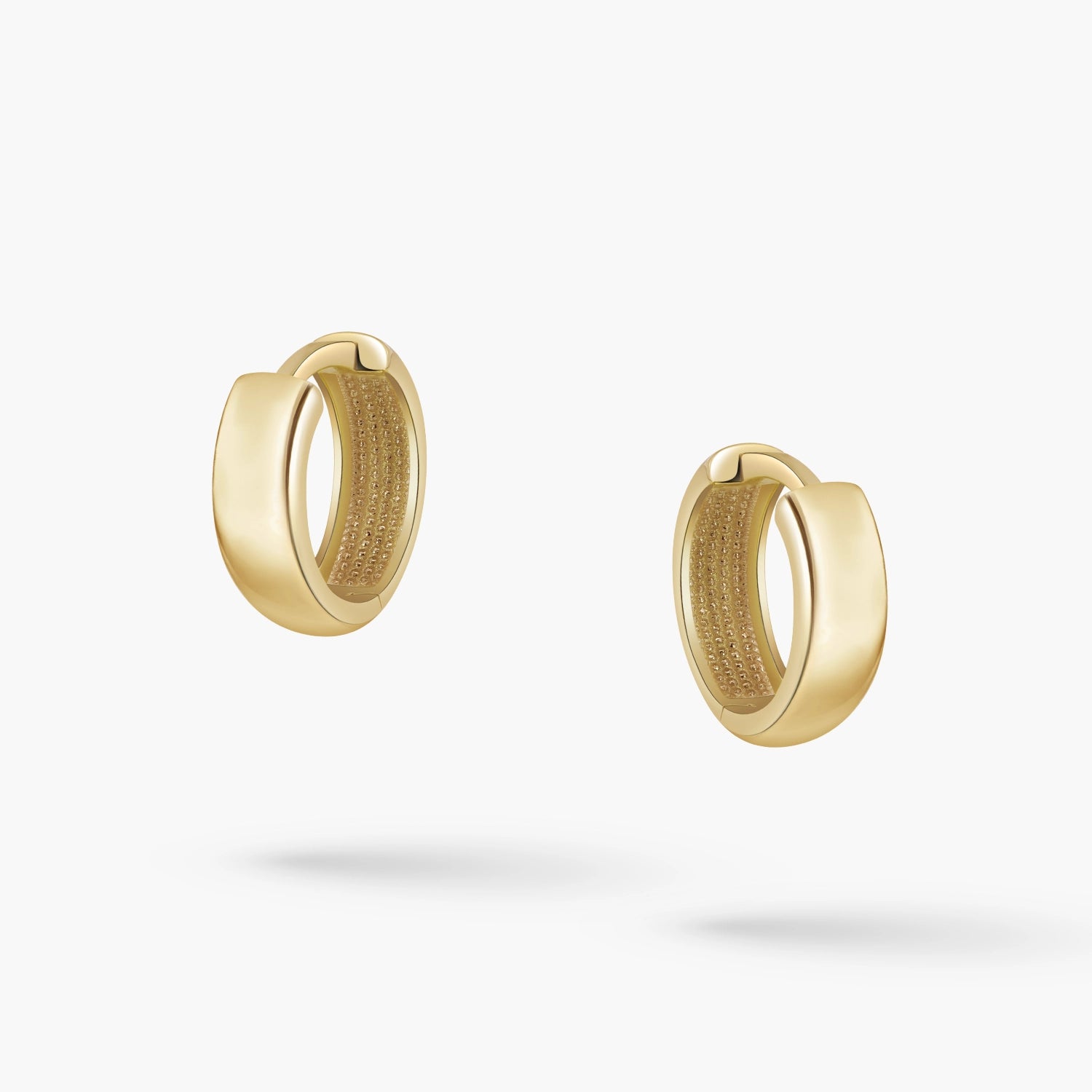 Classic 9kt yellow gold small hoop earrings, polished for a smooth, radiant finish. Their simple, round design offers timeless elegance for everyday wear.