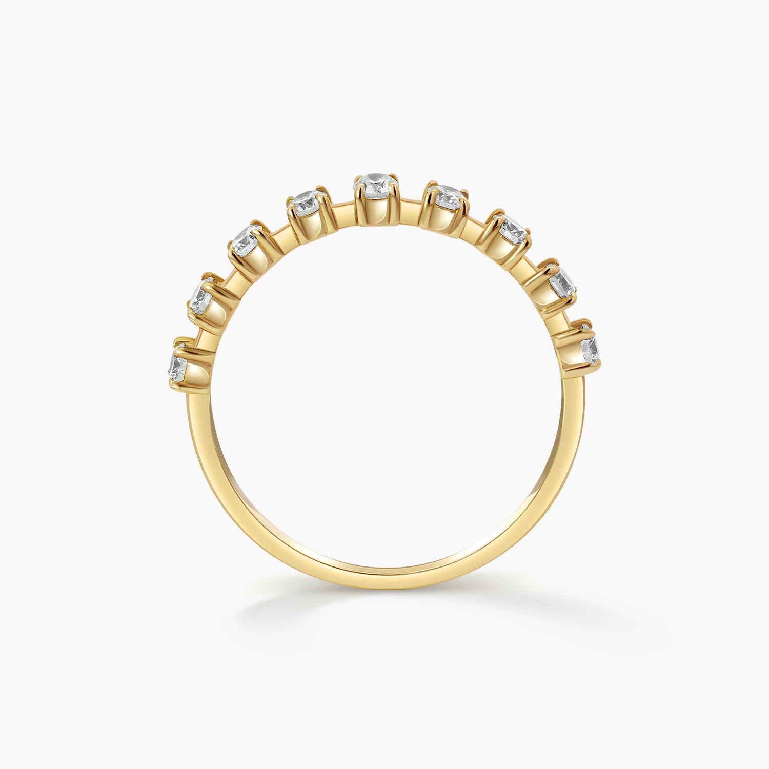 A delicate 18kt yellow gold 1/2 eternity ring set with nine sparkling diamonds, offering subtle shimmer and elegance. Perfect for stacking or wearing solo as a refined, everyday statement.