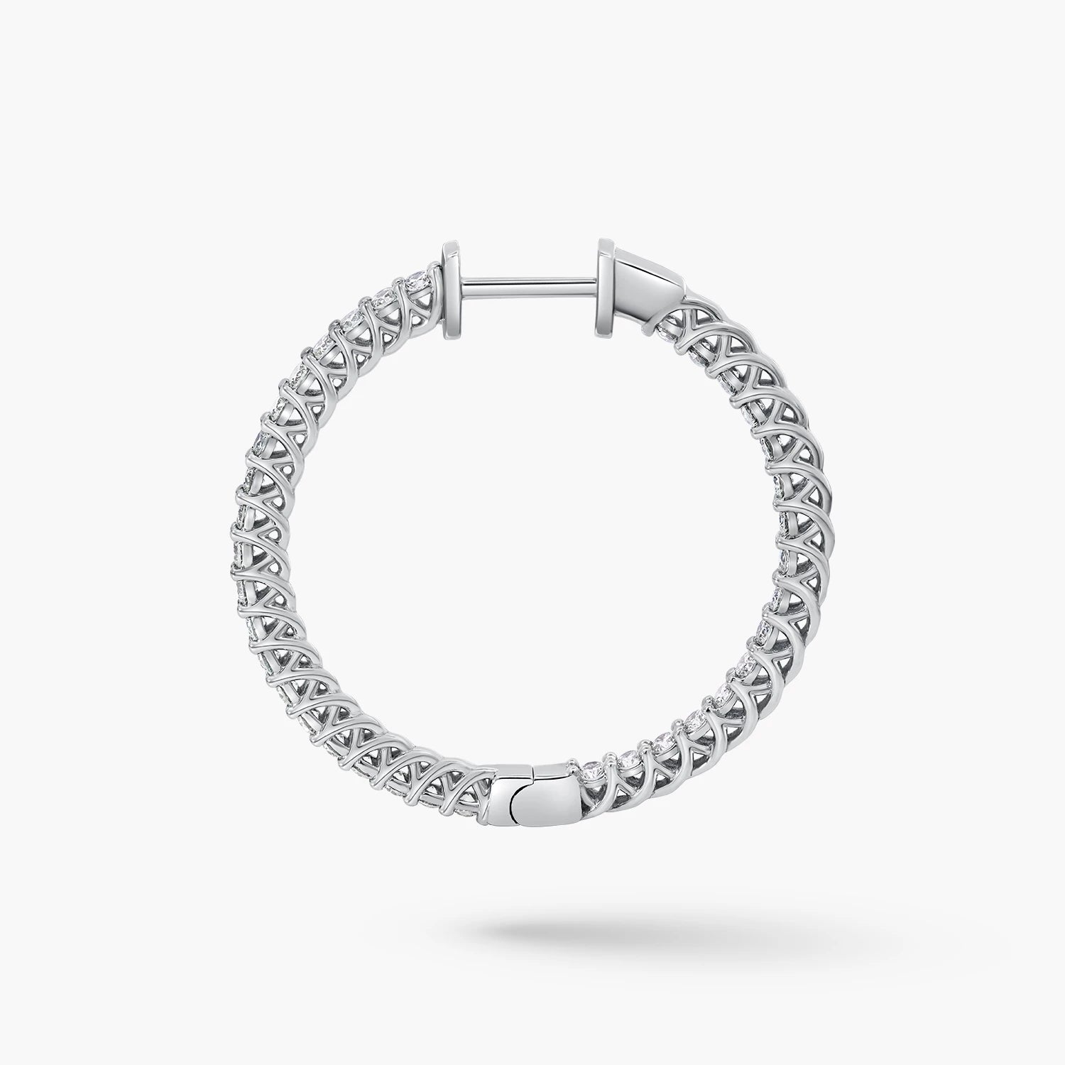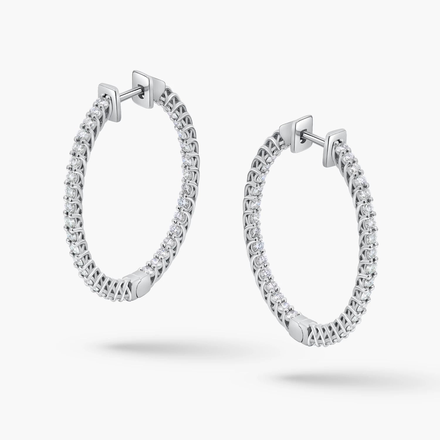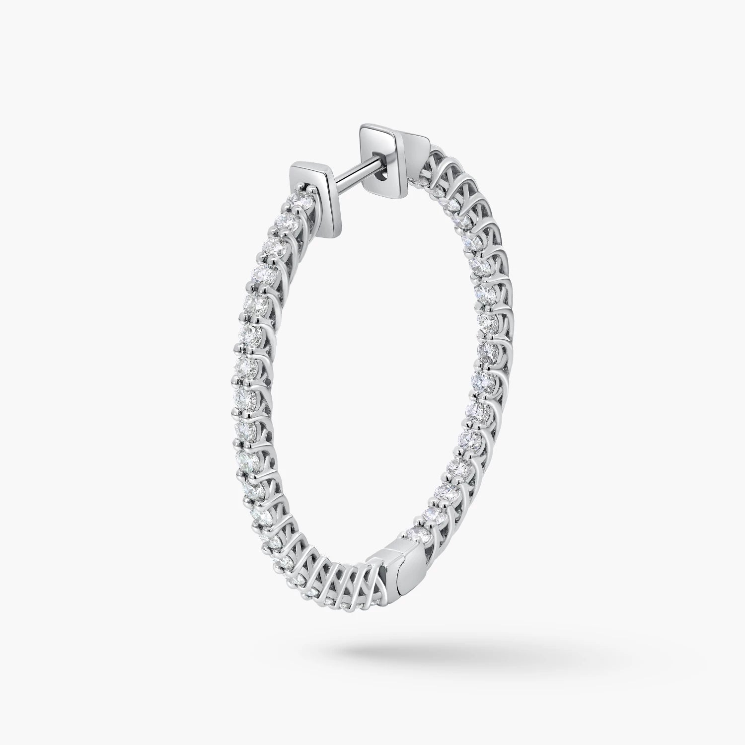 Elegant 18kt white gold hoop earrings featuring 72 lab-grown diamonds (D–F, VS) totaling 1.44ct. Weighing 5.5g, these hoops combine subtle brilliance with a lightweight, comfortable design for effortless sophistication.