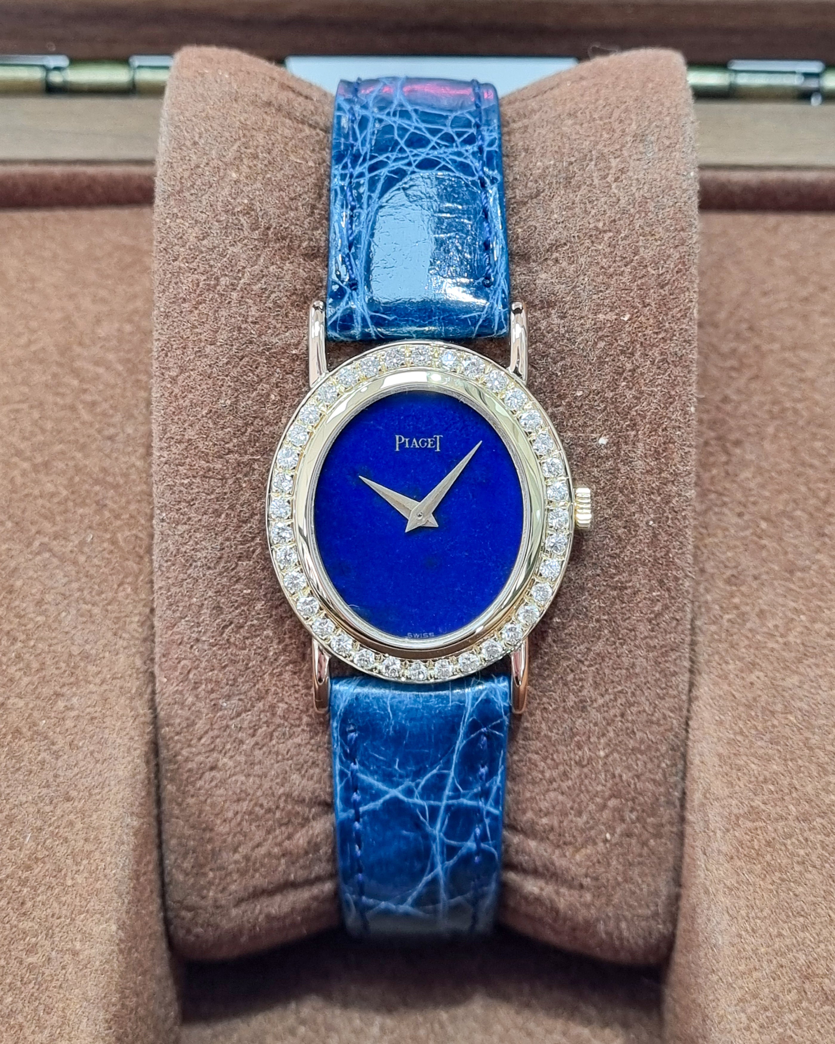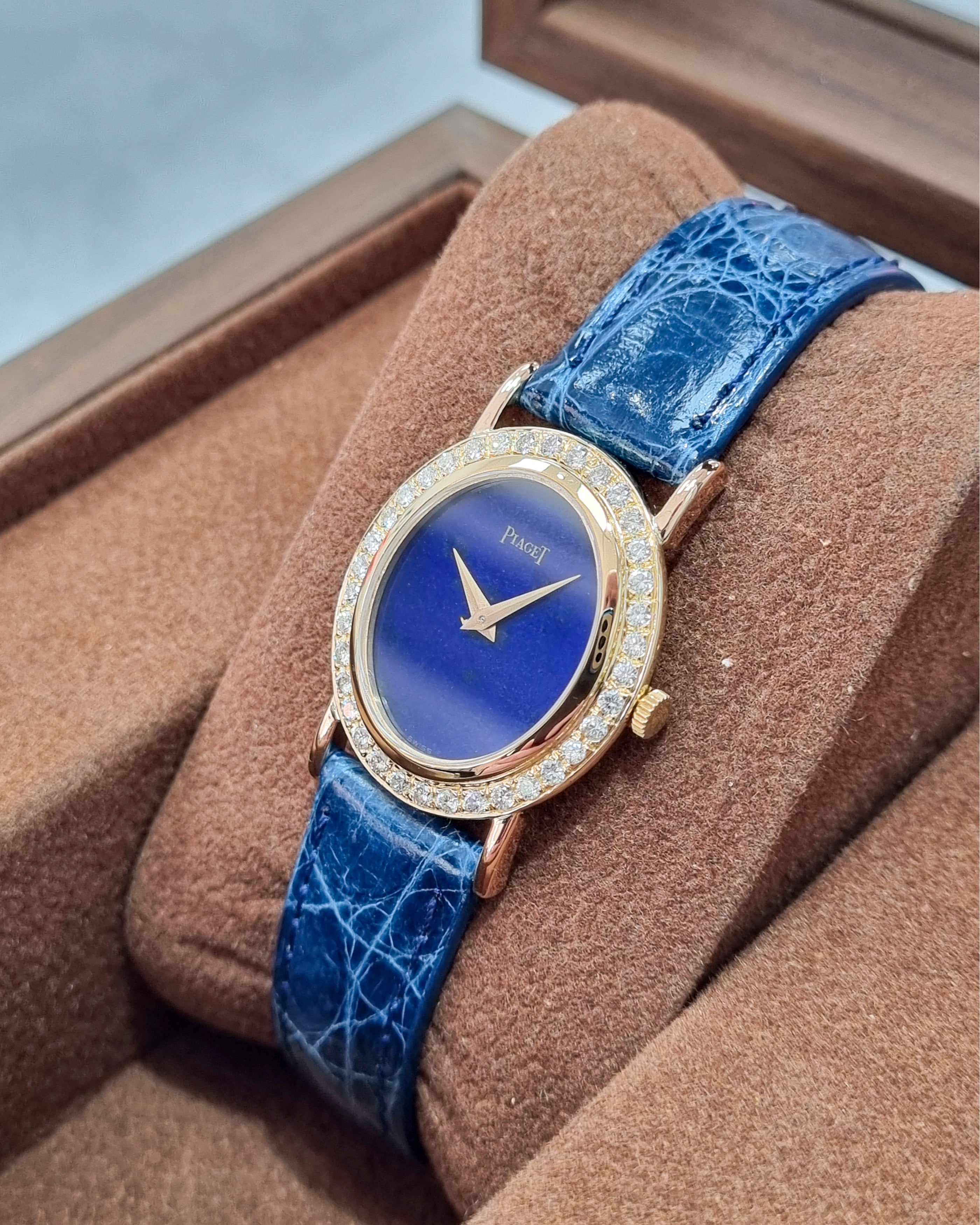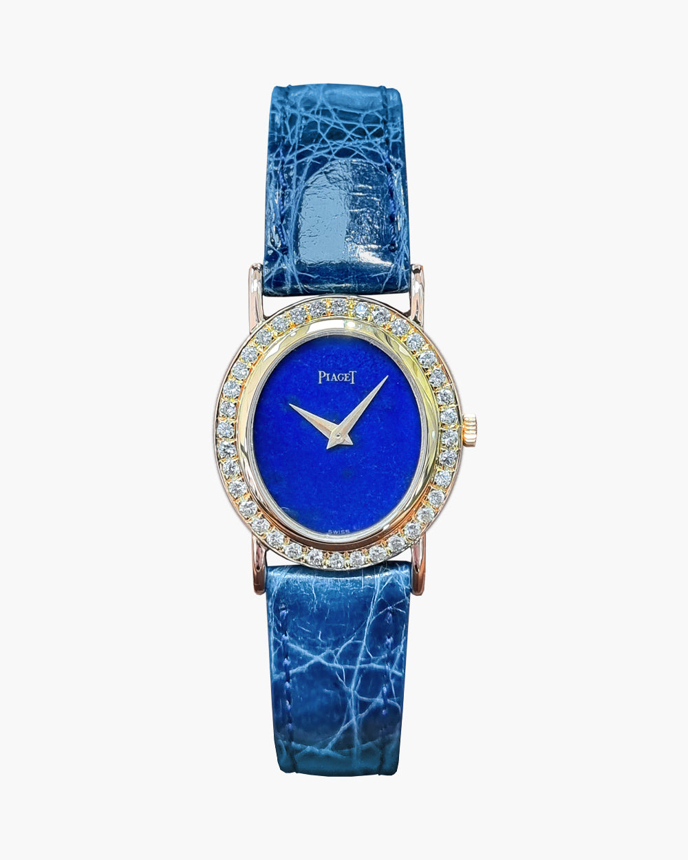 Piaget Lapis-Lazuli Dial Watch (23.7mm) – A striking 23.7mm timepiece featuring a deep blue lapis-lazuli dial paired with a sleek leather strap. In perfect condition. Cat No. 0832.
