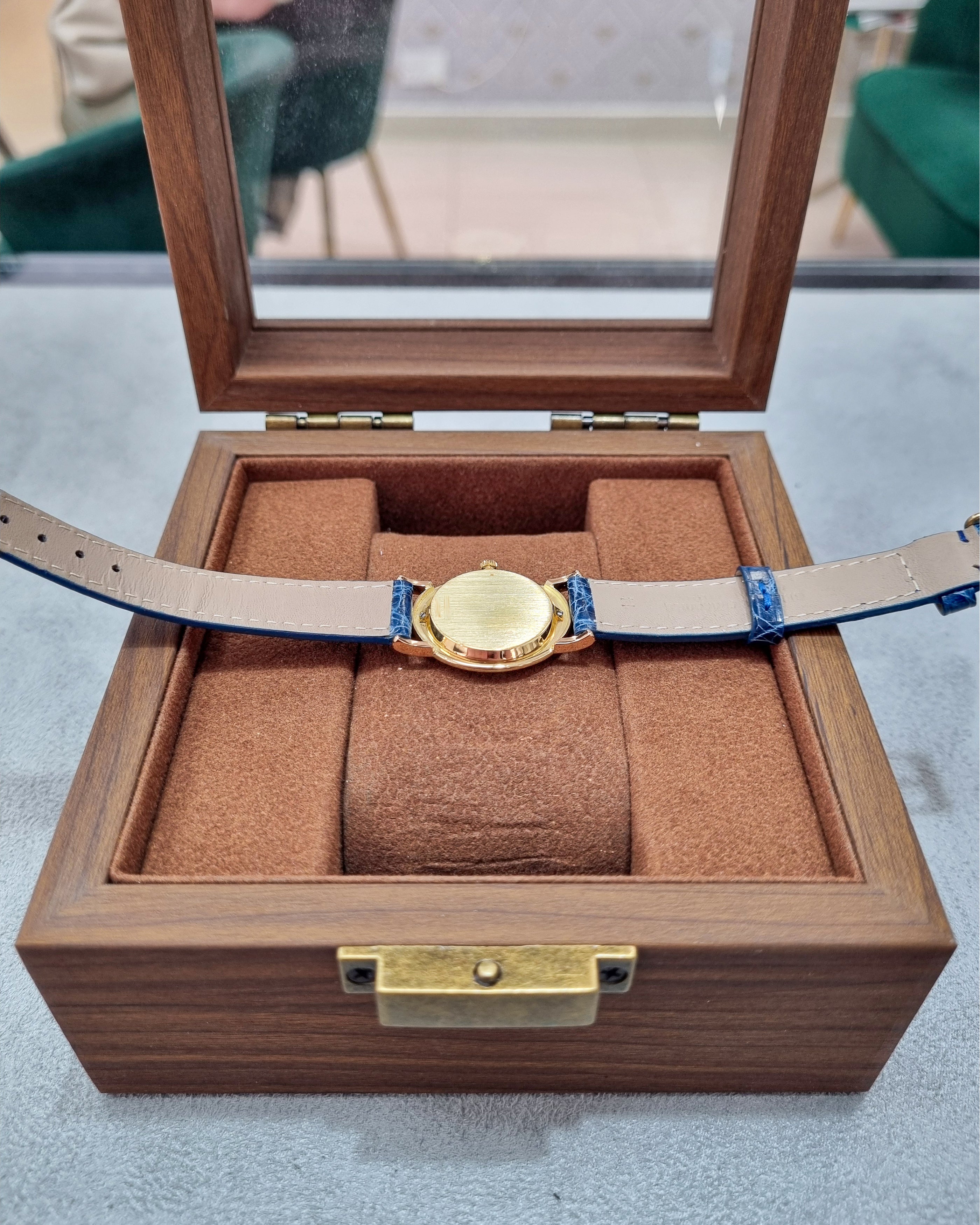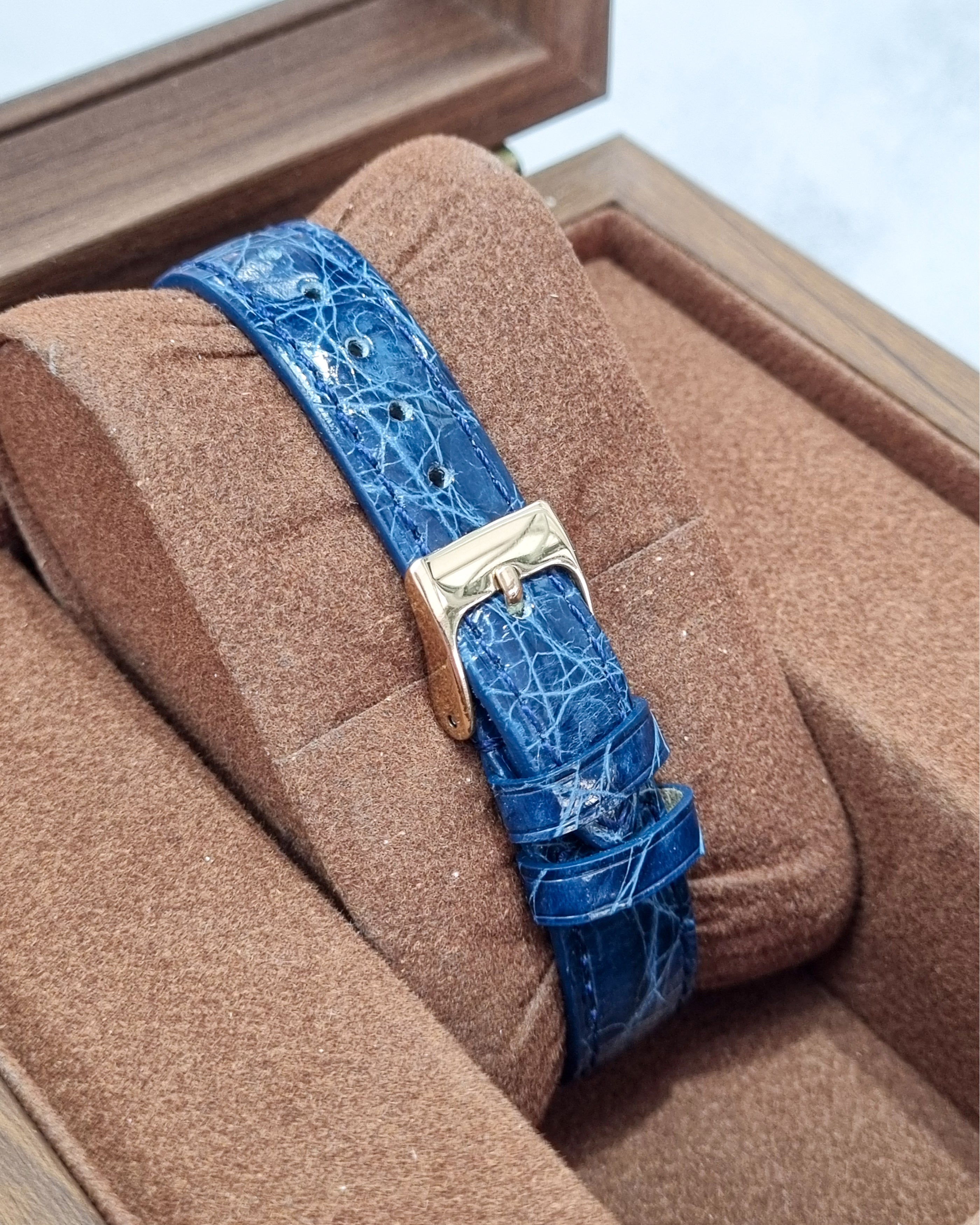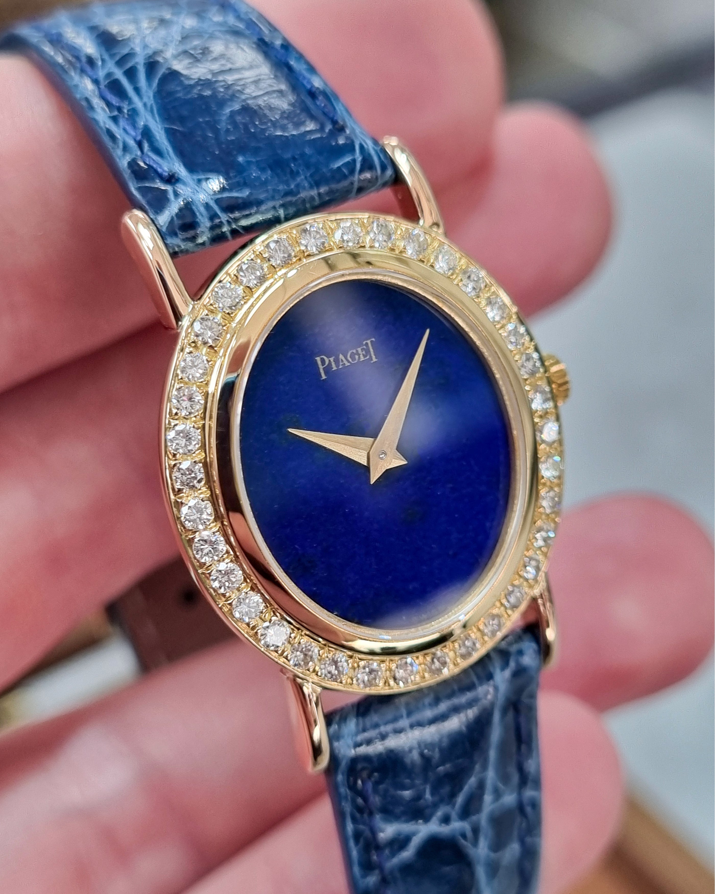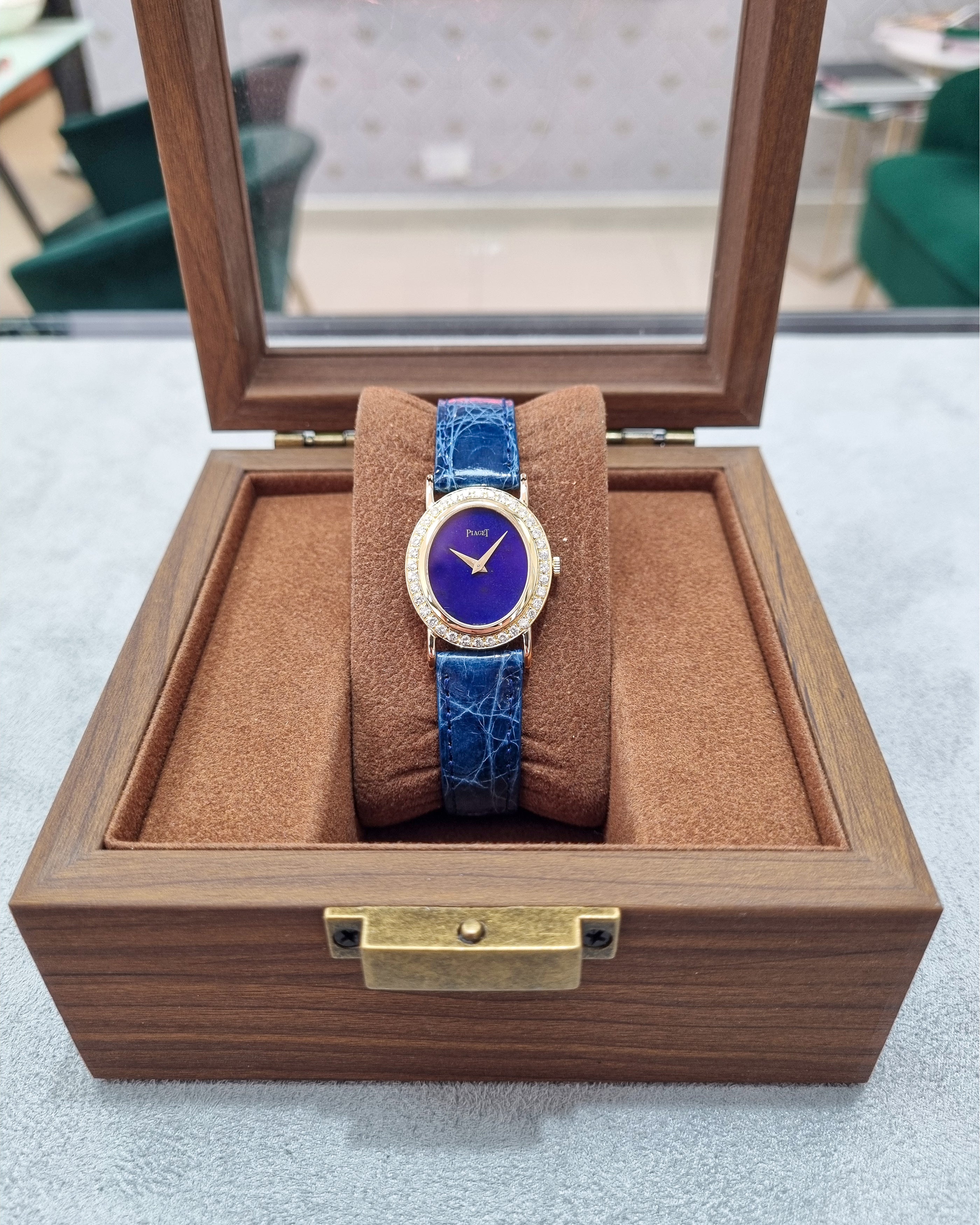Piaget Lapis-Lazuli Dial Watch (23.7mm) – A striking 23.7mm timepiece featuring a deep blue lapis-lazuli dial paired with a sleek leather strap. In perfect condition. Cat No. 0832.