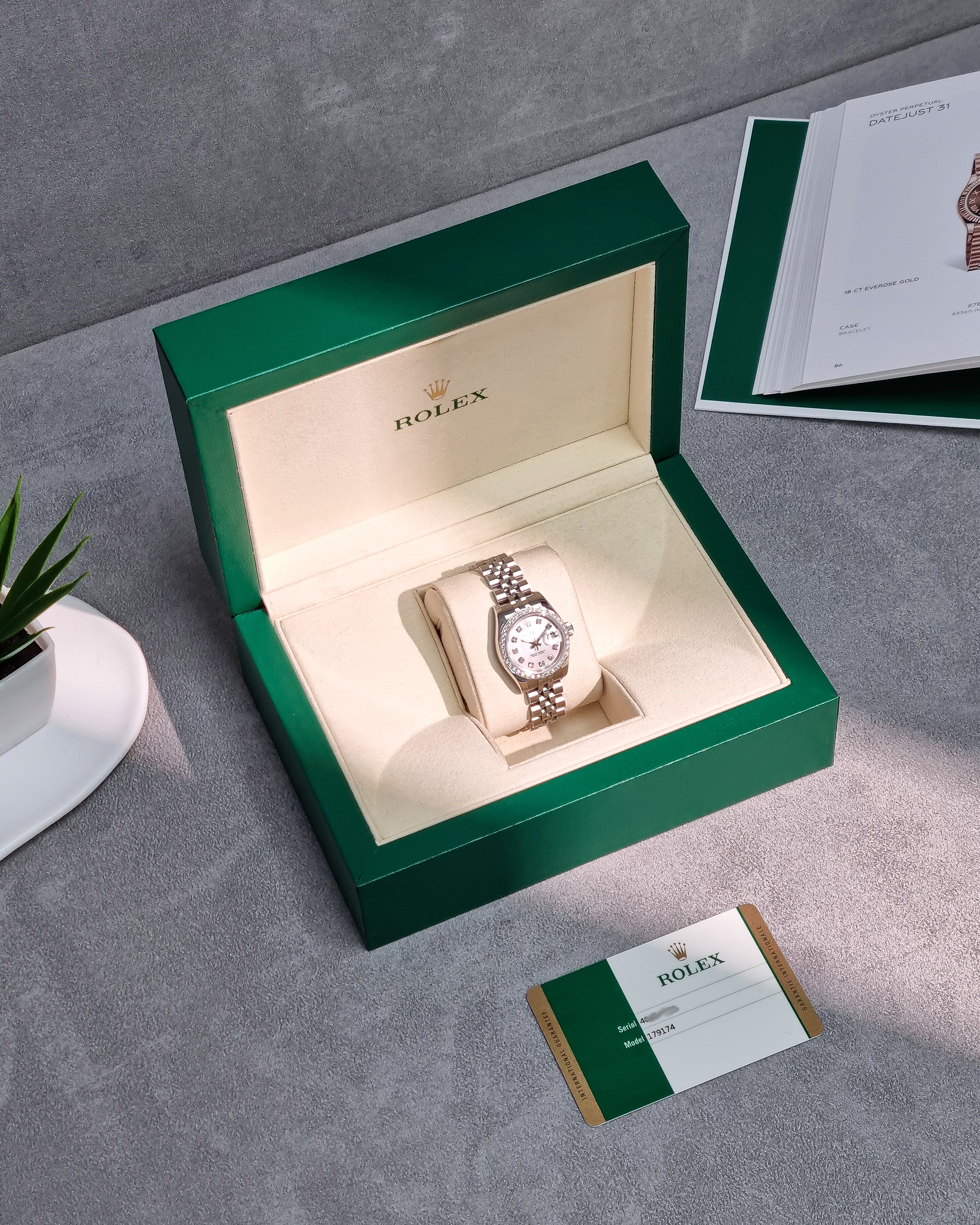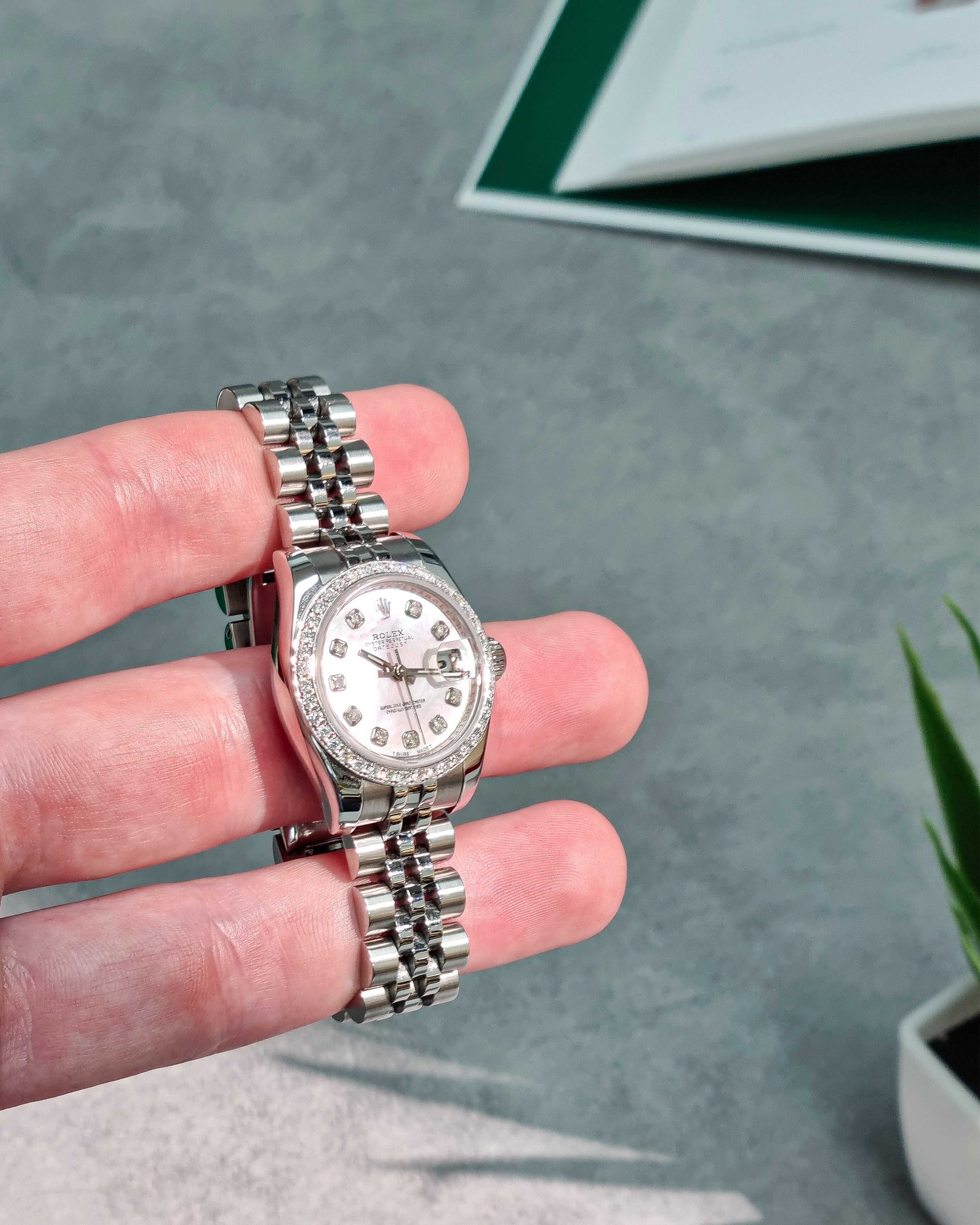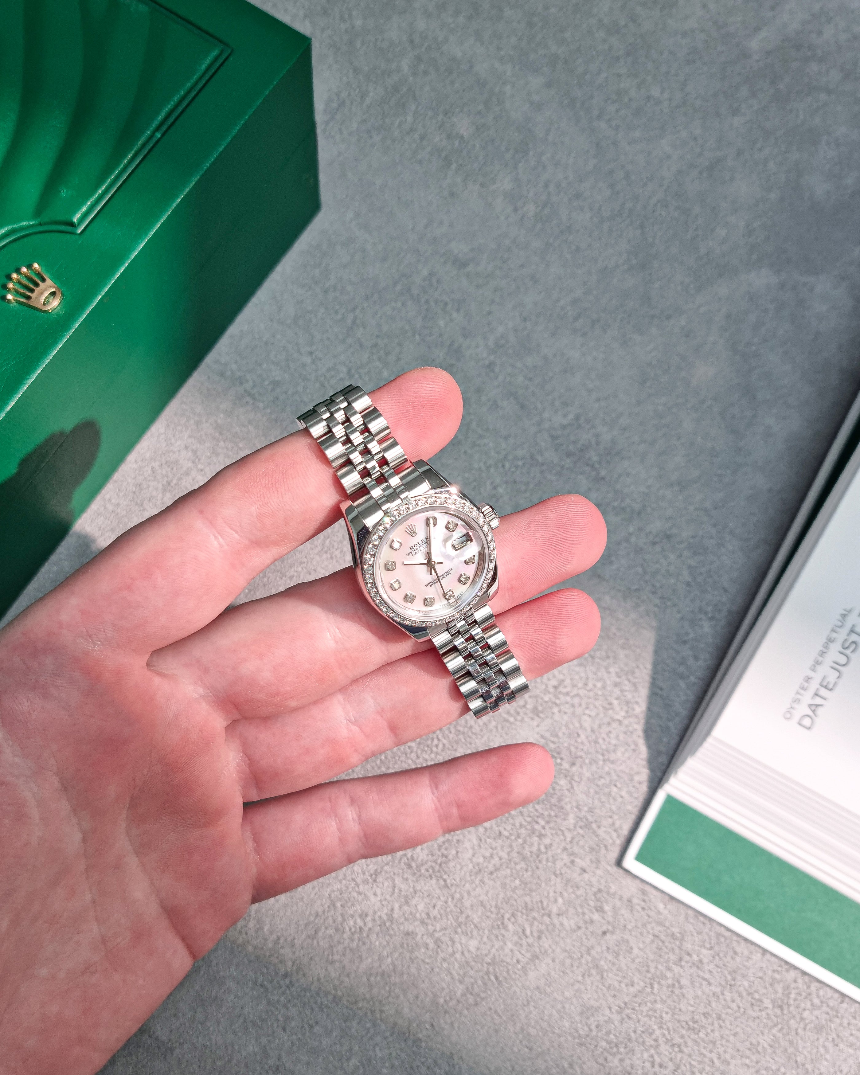 A beautiful expression of classic Rolex craftsmanship and feminine grace — perfect for everyday wear or special occasions.