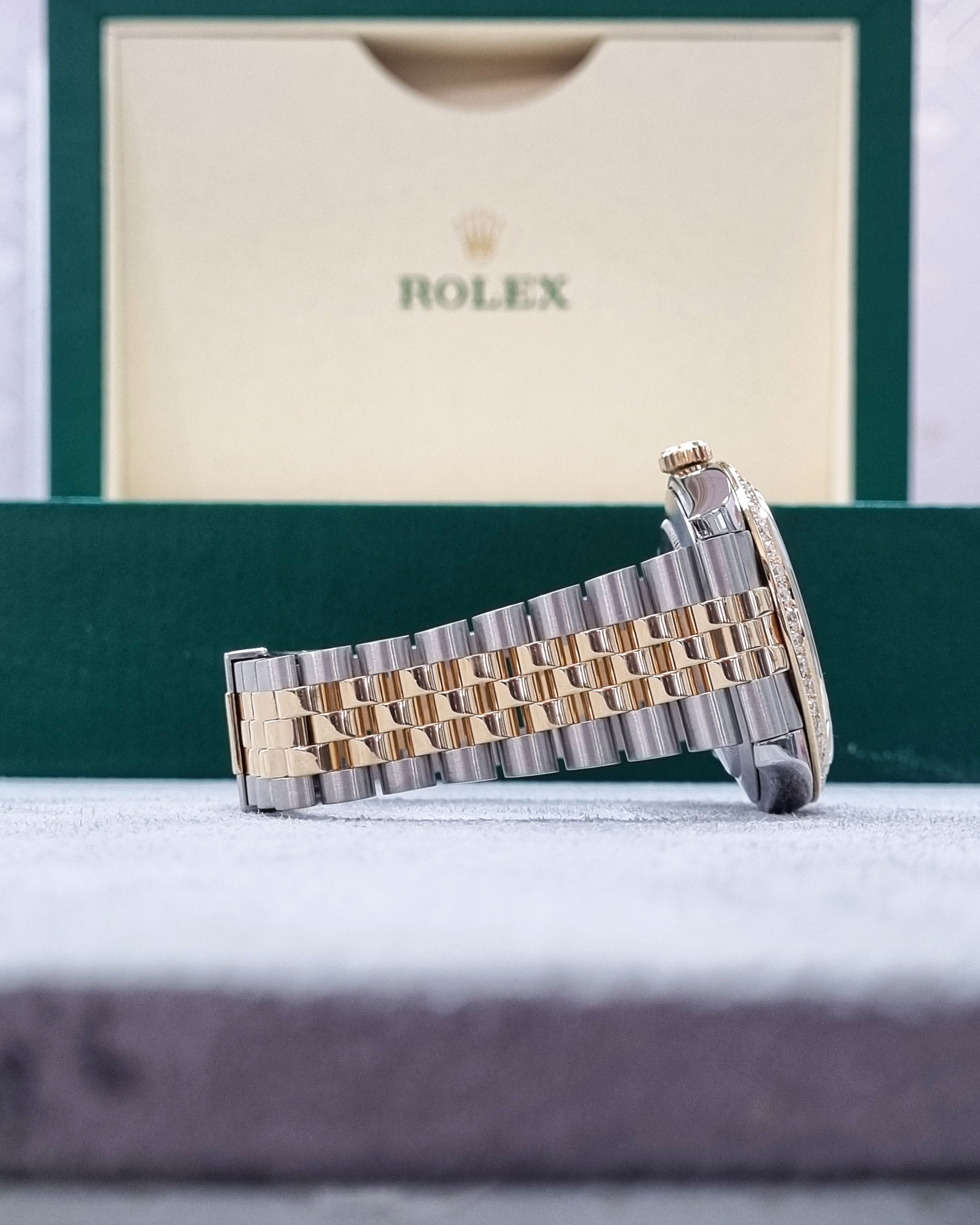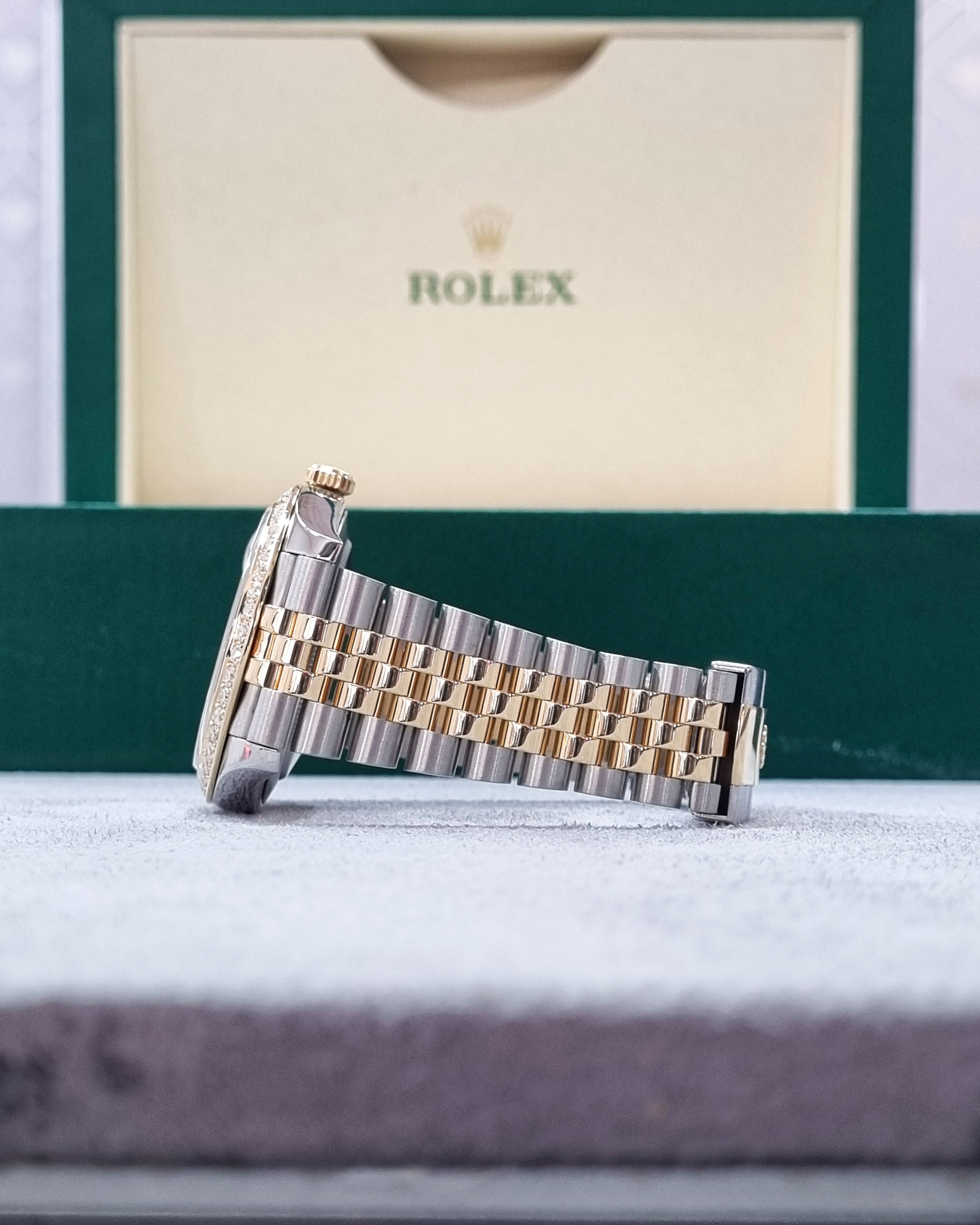 A luxurious and eye-catching Datejust, combining Rolex’s iconic craftsmanship with sparkling diamond enhancements for a truly standout and sophisticated look.