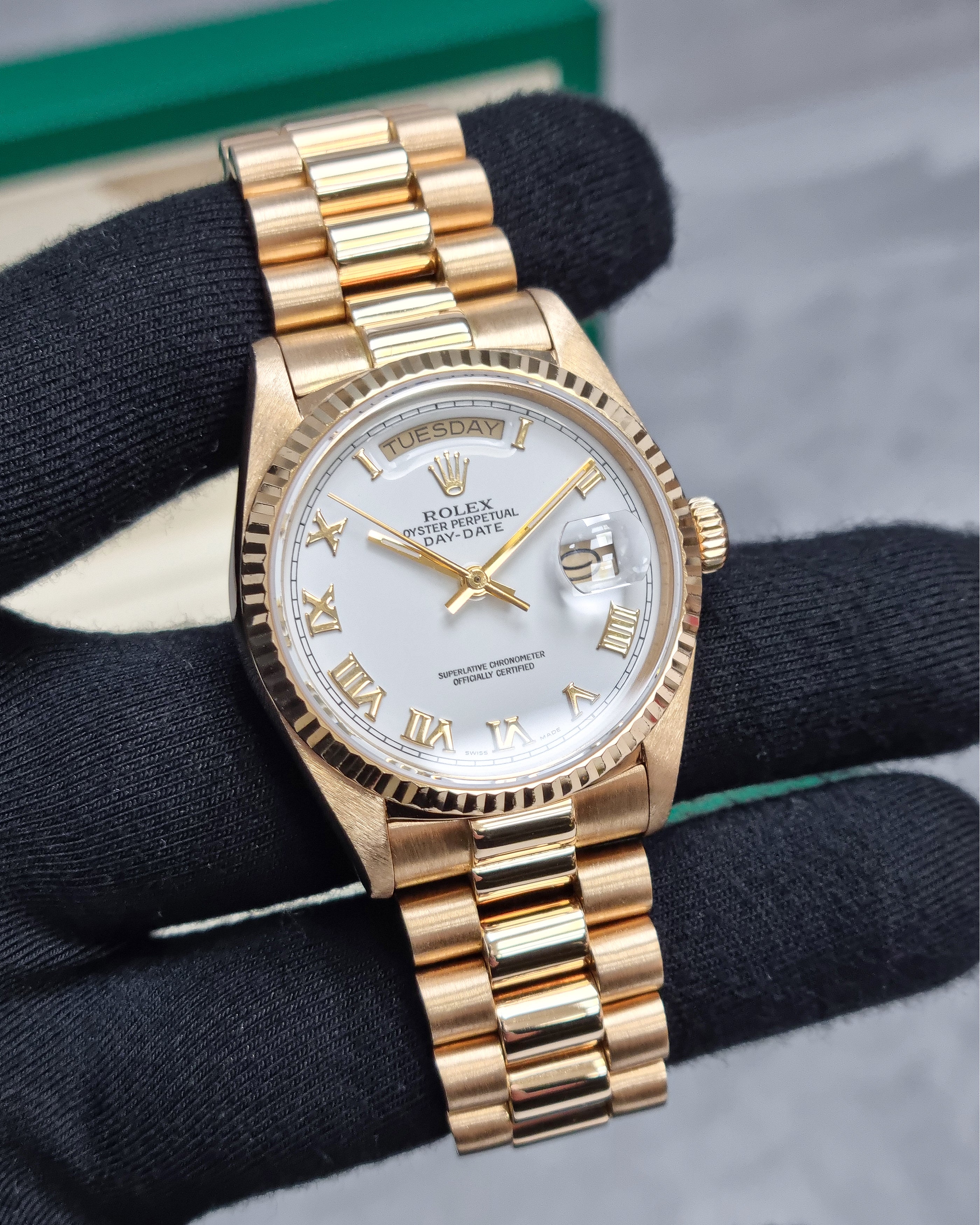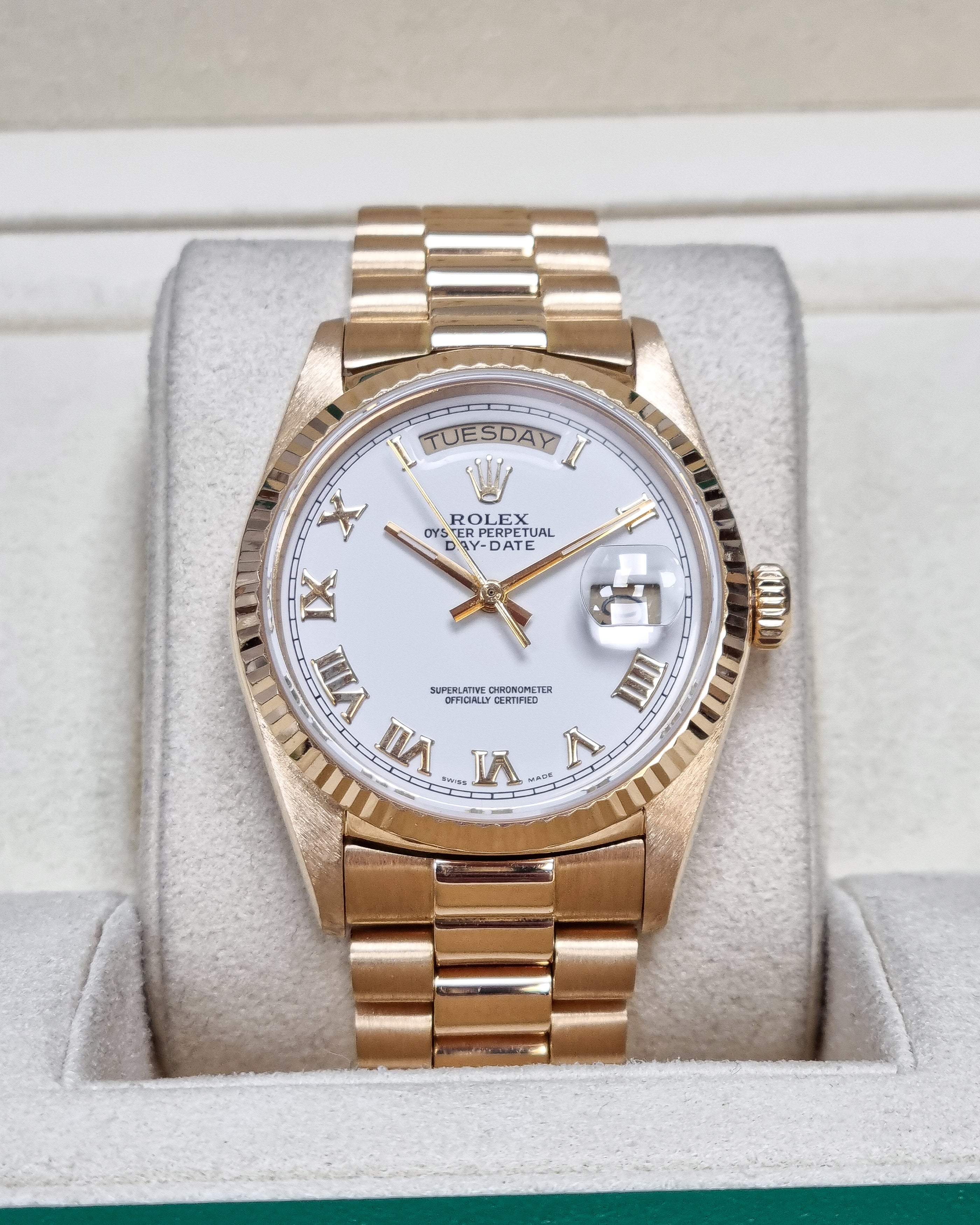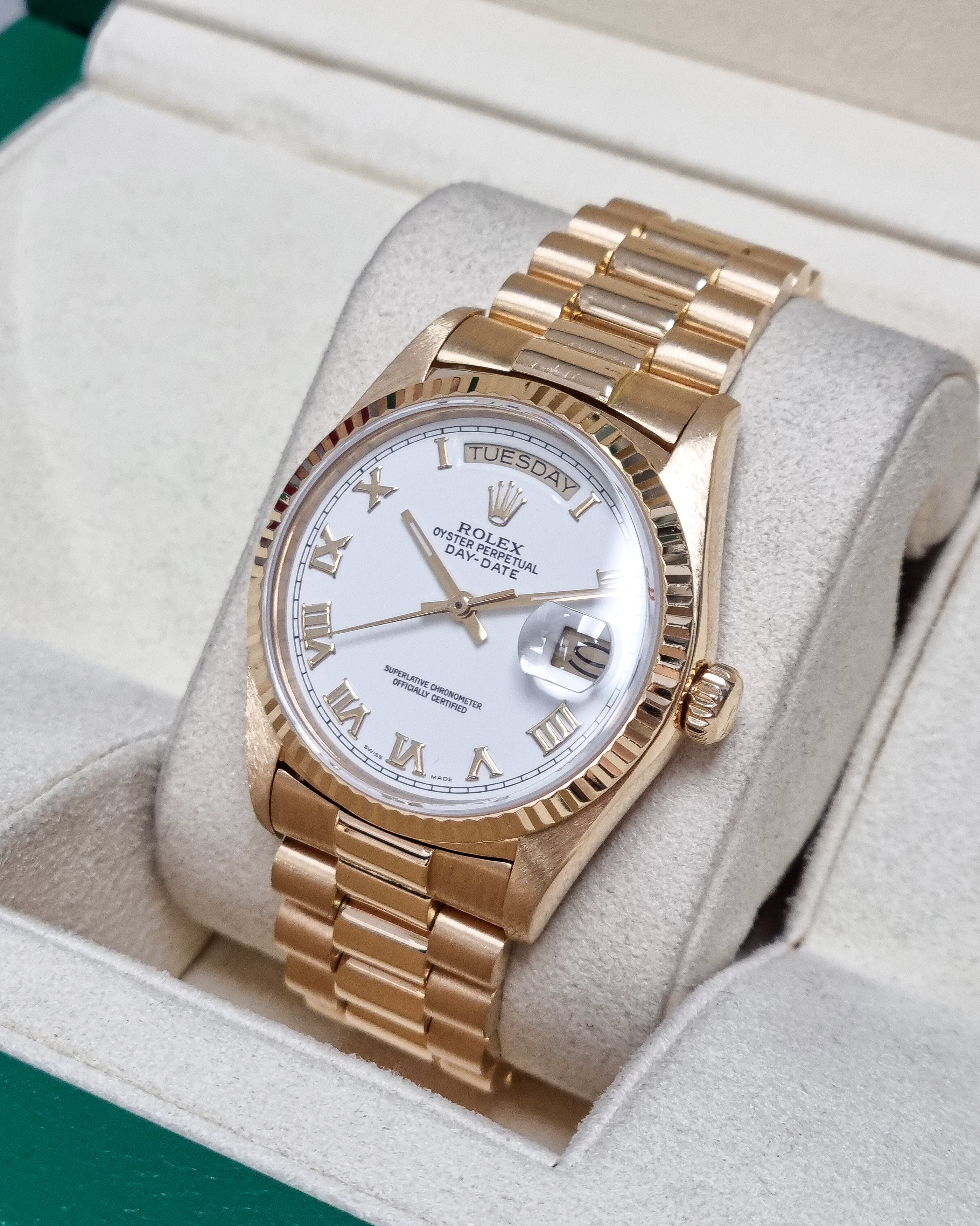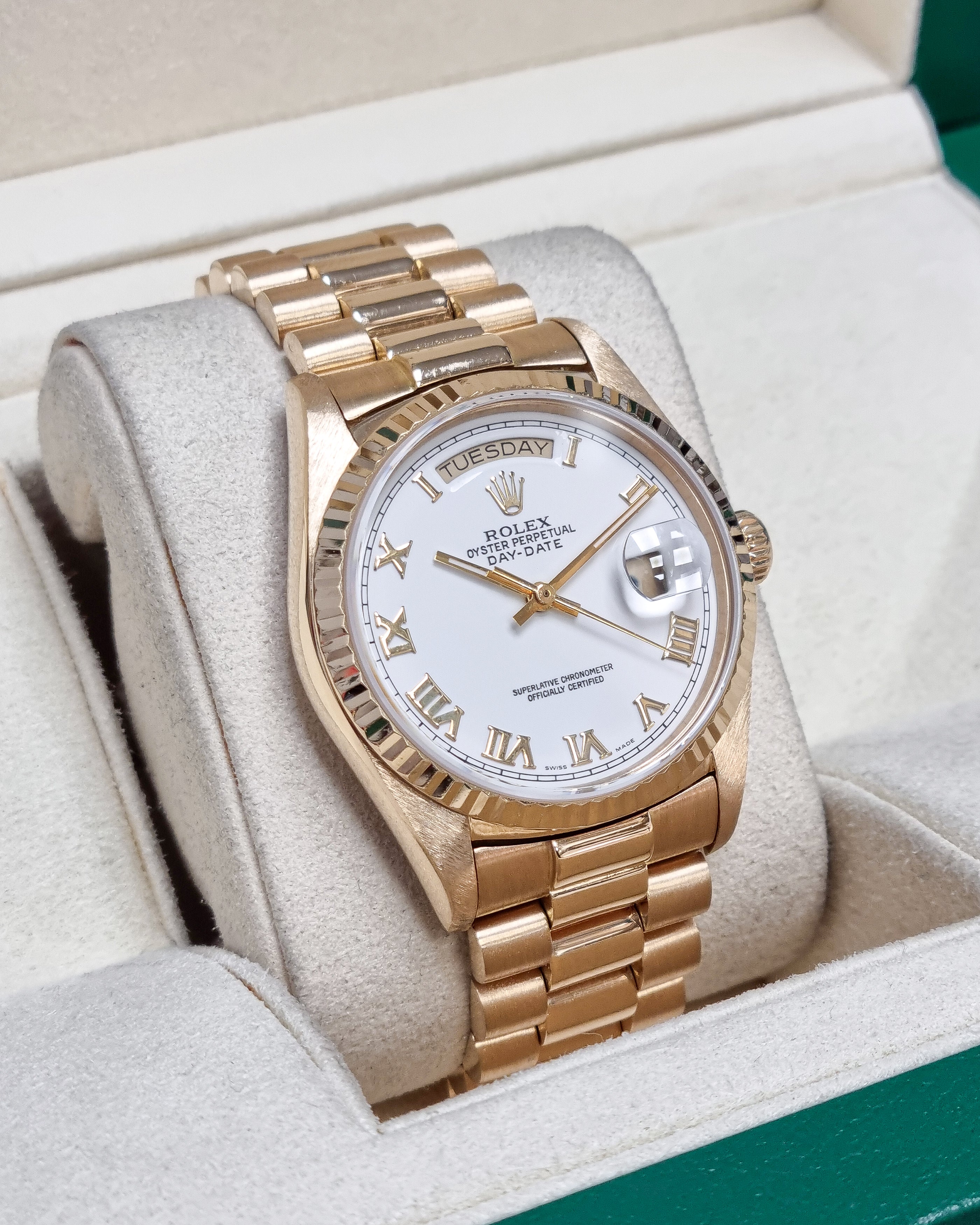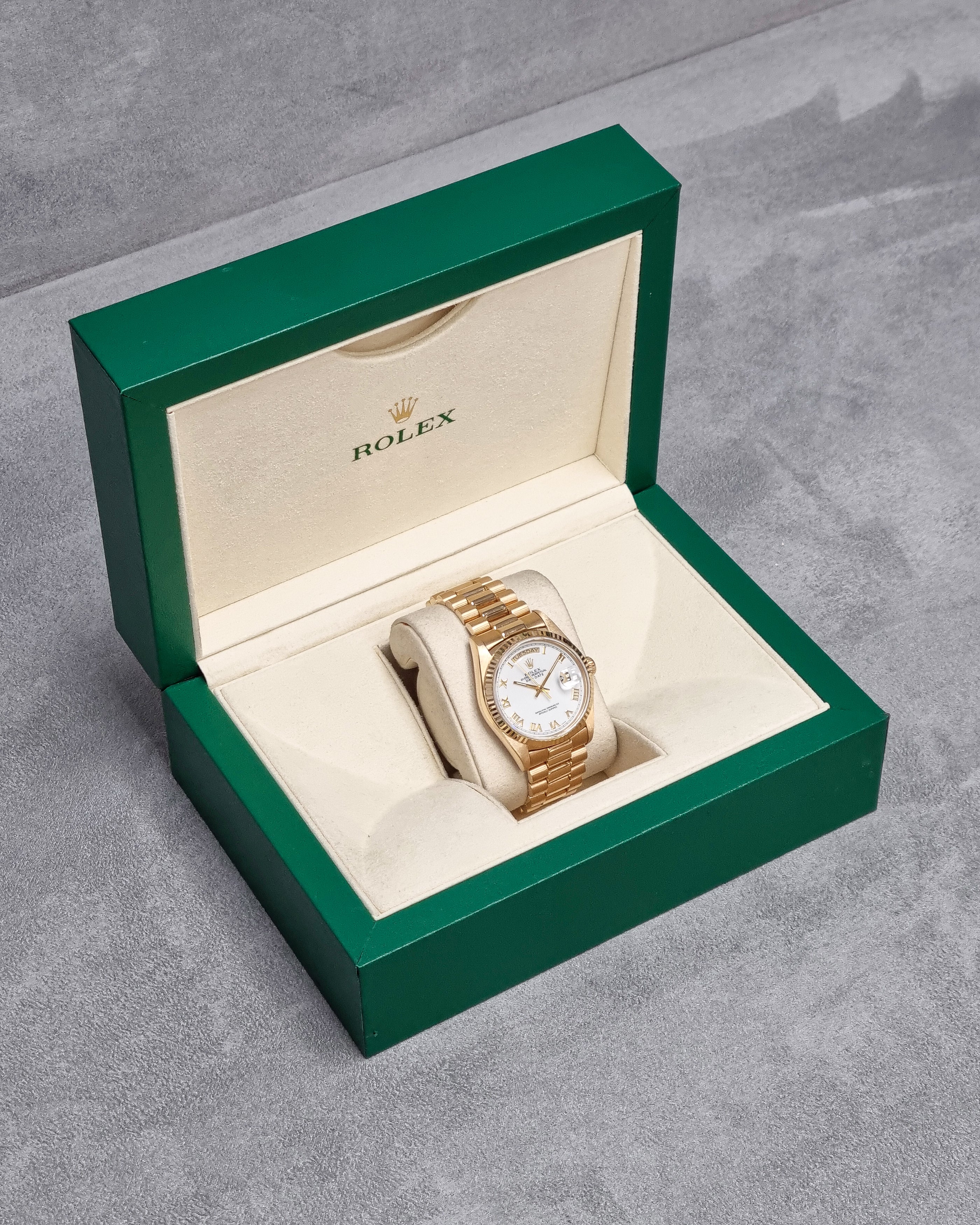 Fitted with the signature 18kt gold President bracelet, it delivers both luxury and comfort, making it an ideal statement piece for any collection. Supplied with box, presented in very good condition, and ready to be worn or treasured.
