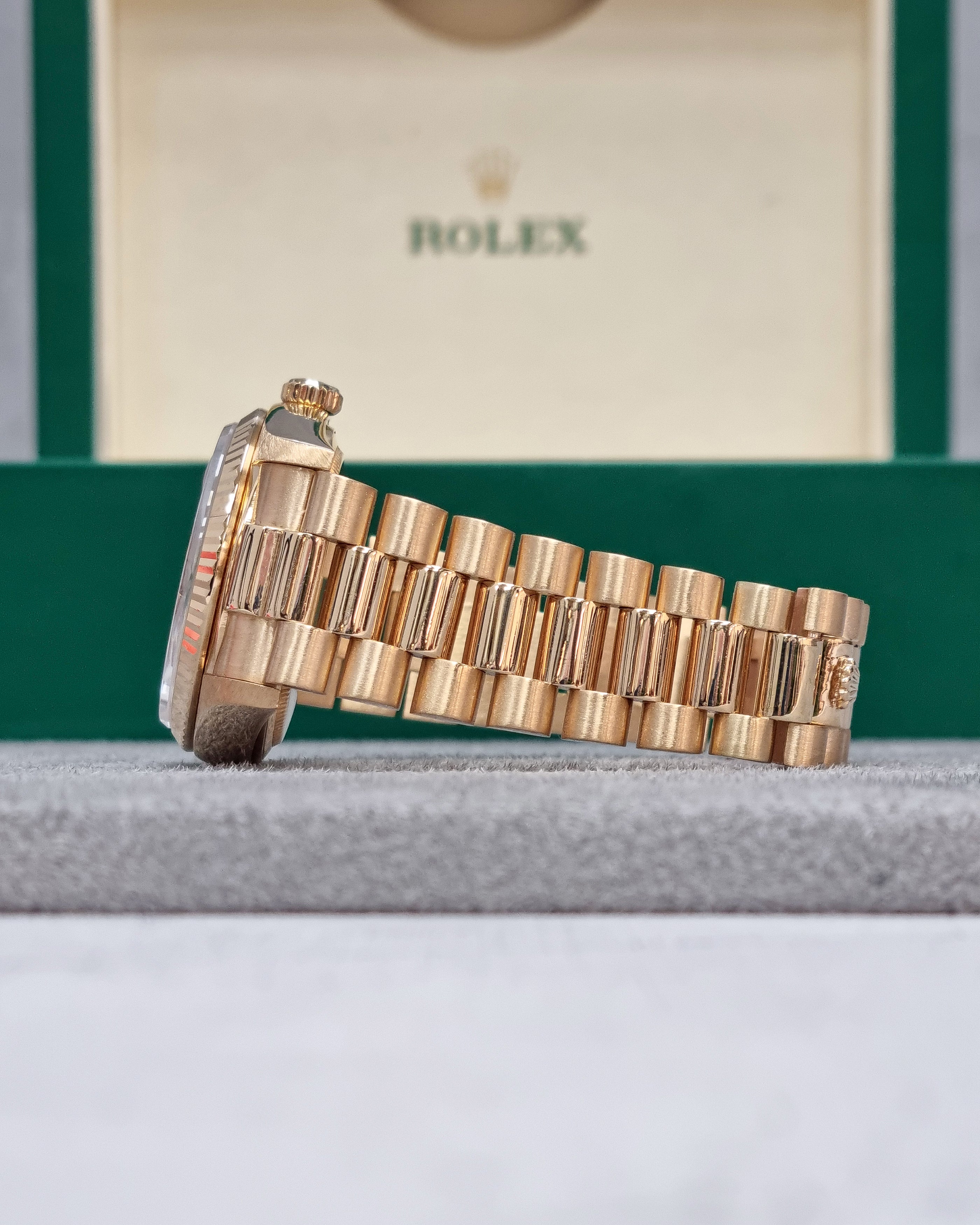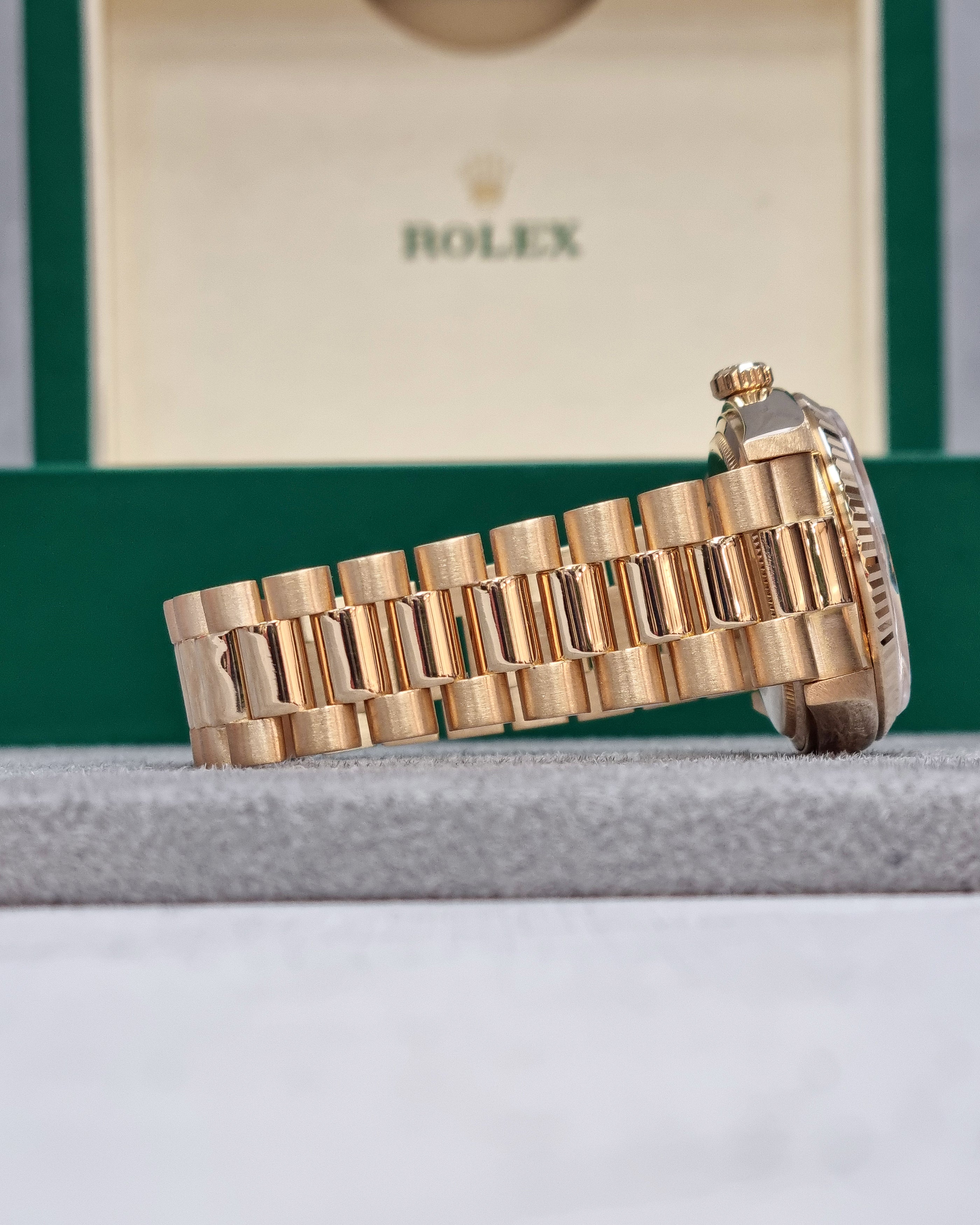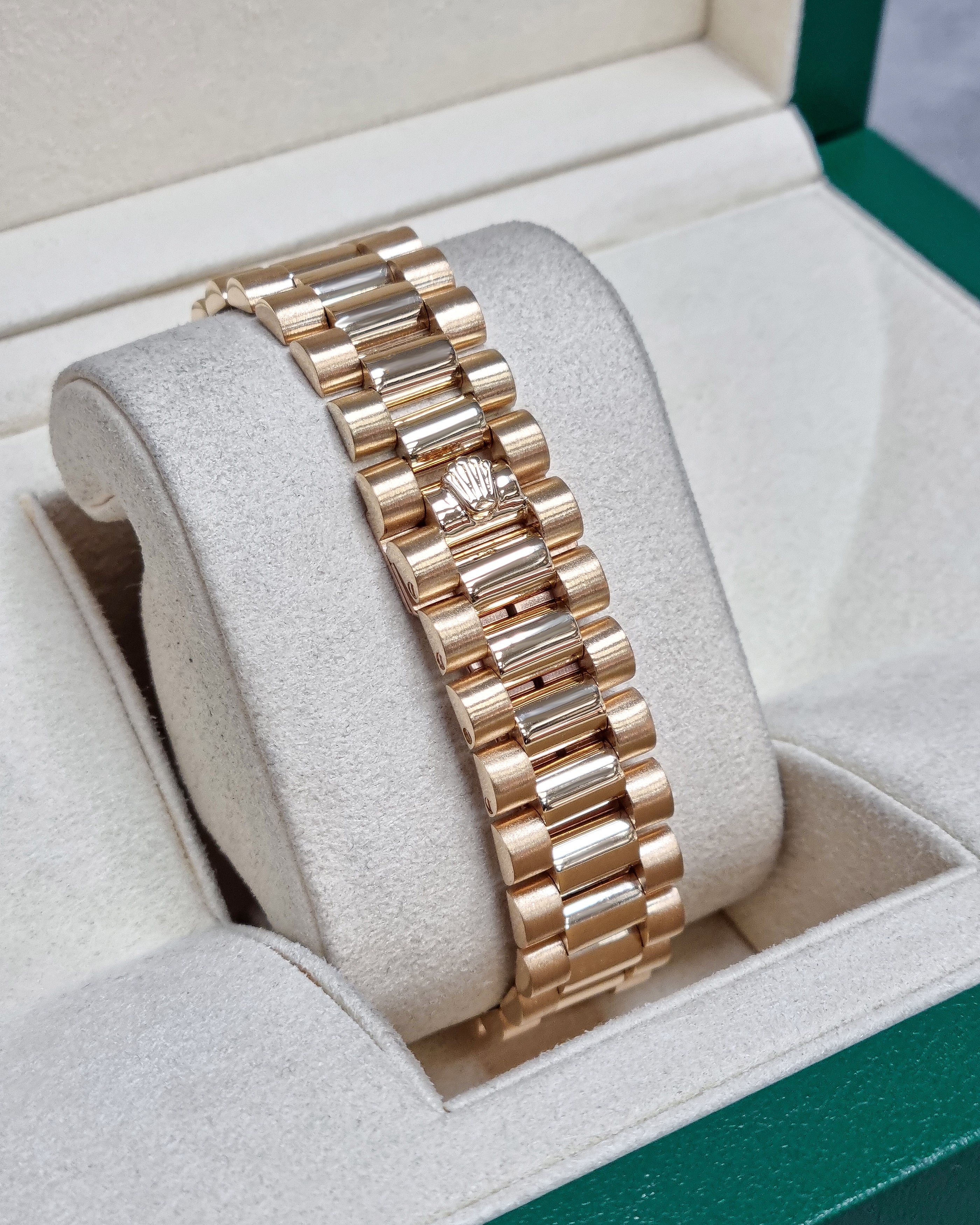 Powered by a reliable automatic movement and fitted with the prestigious 18kt gold President bracelet, this model embodies the timeless sophistication of the Day-Date collection.
