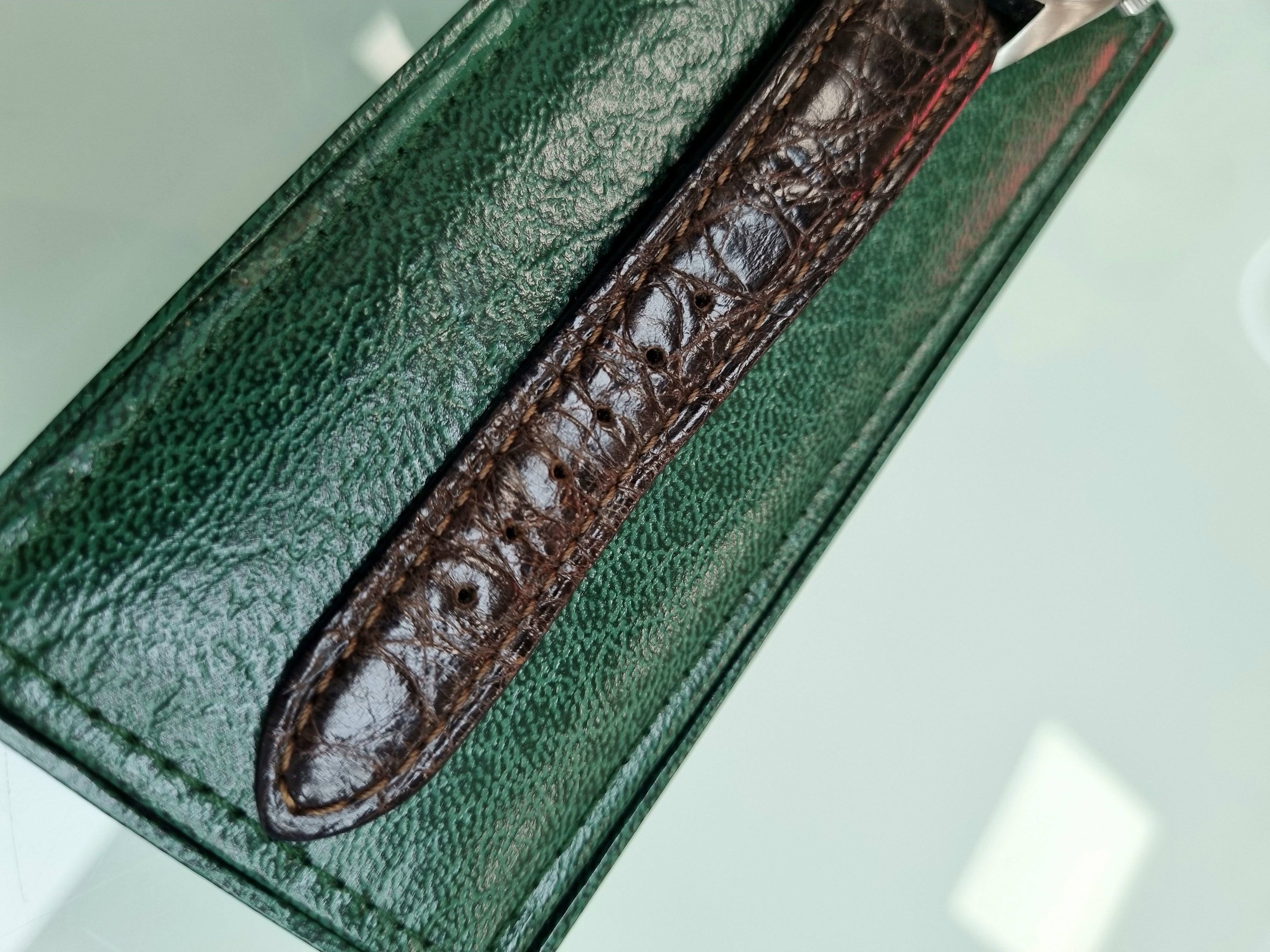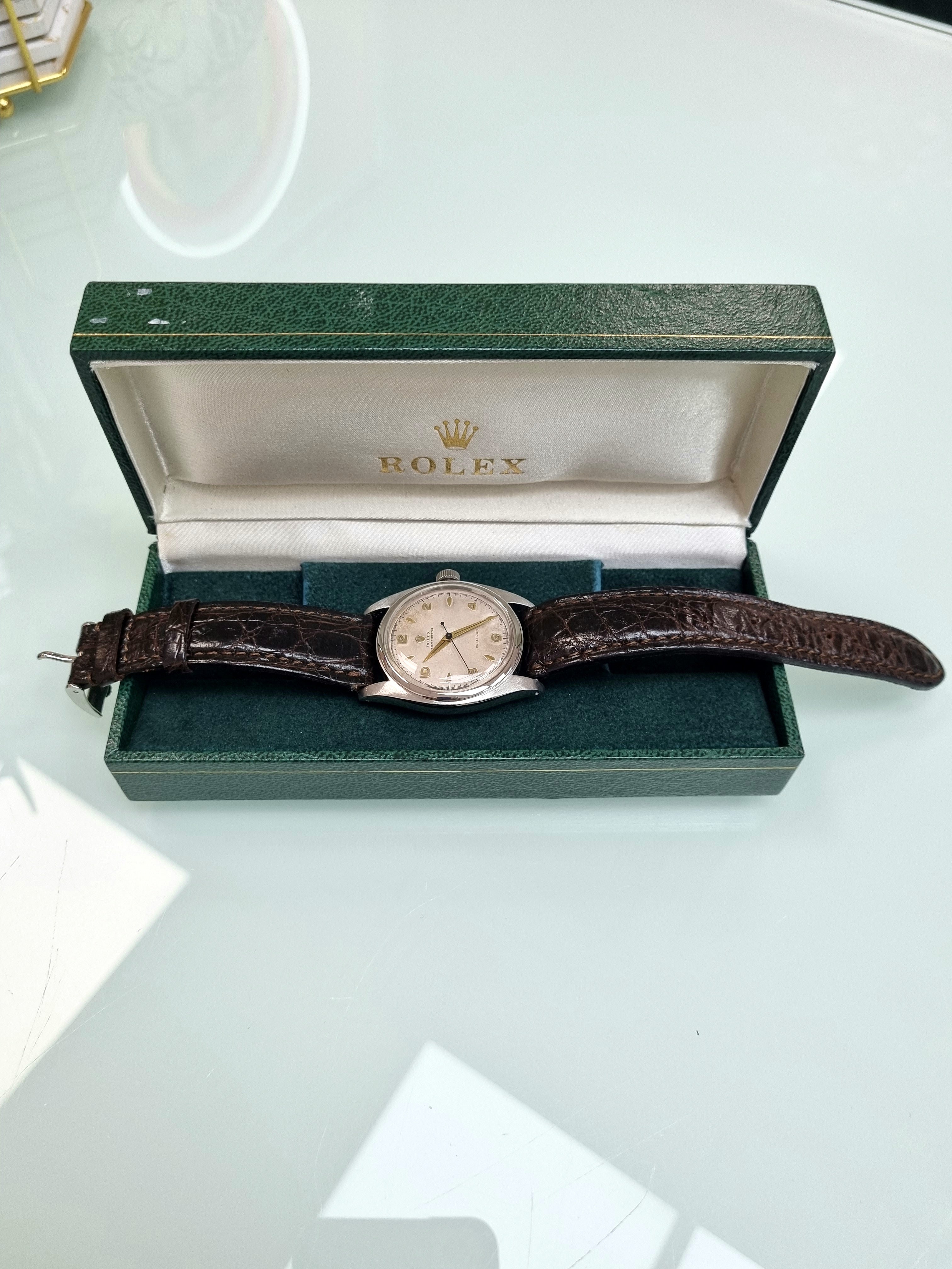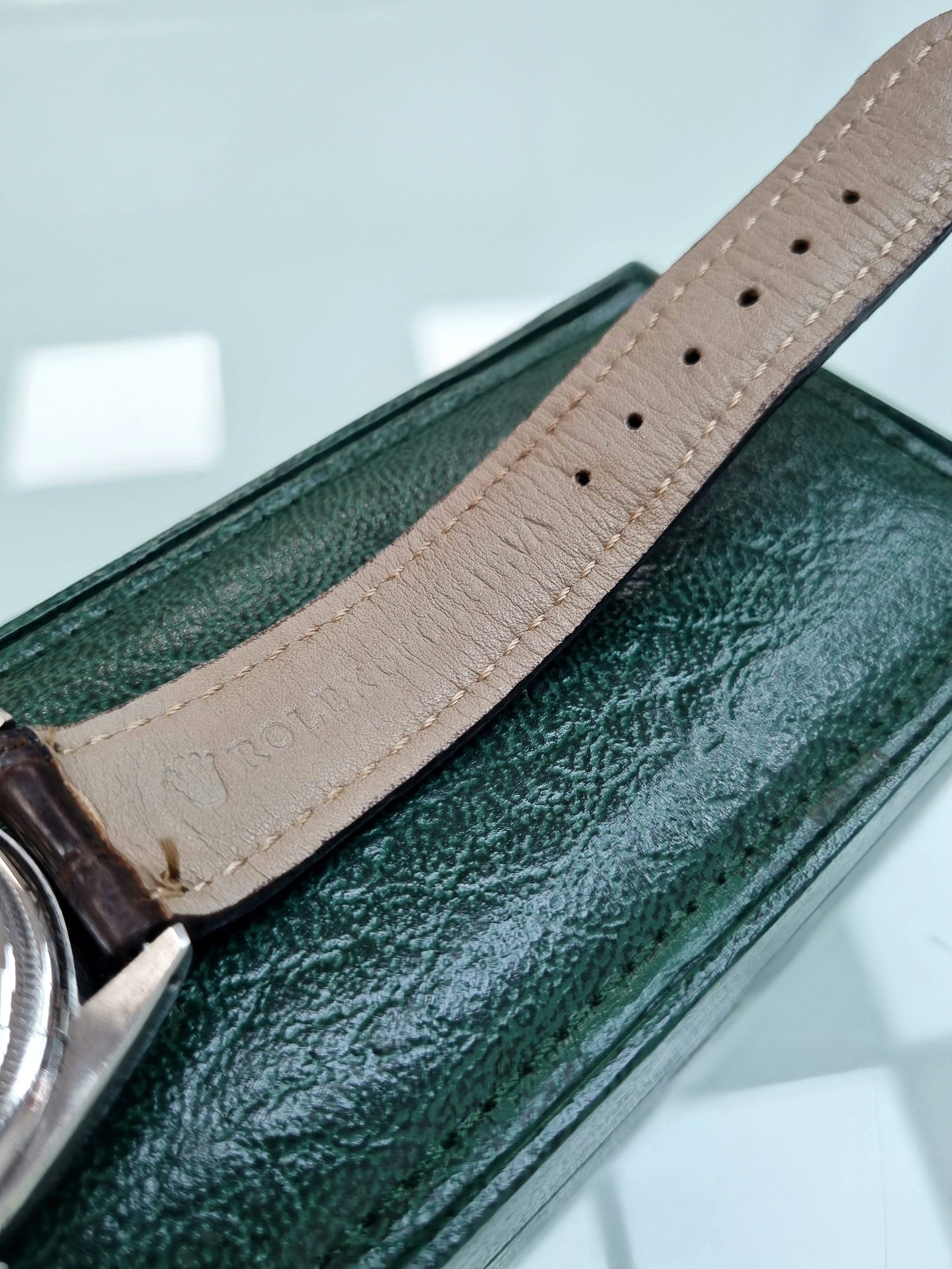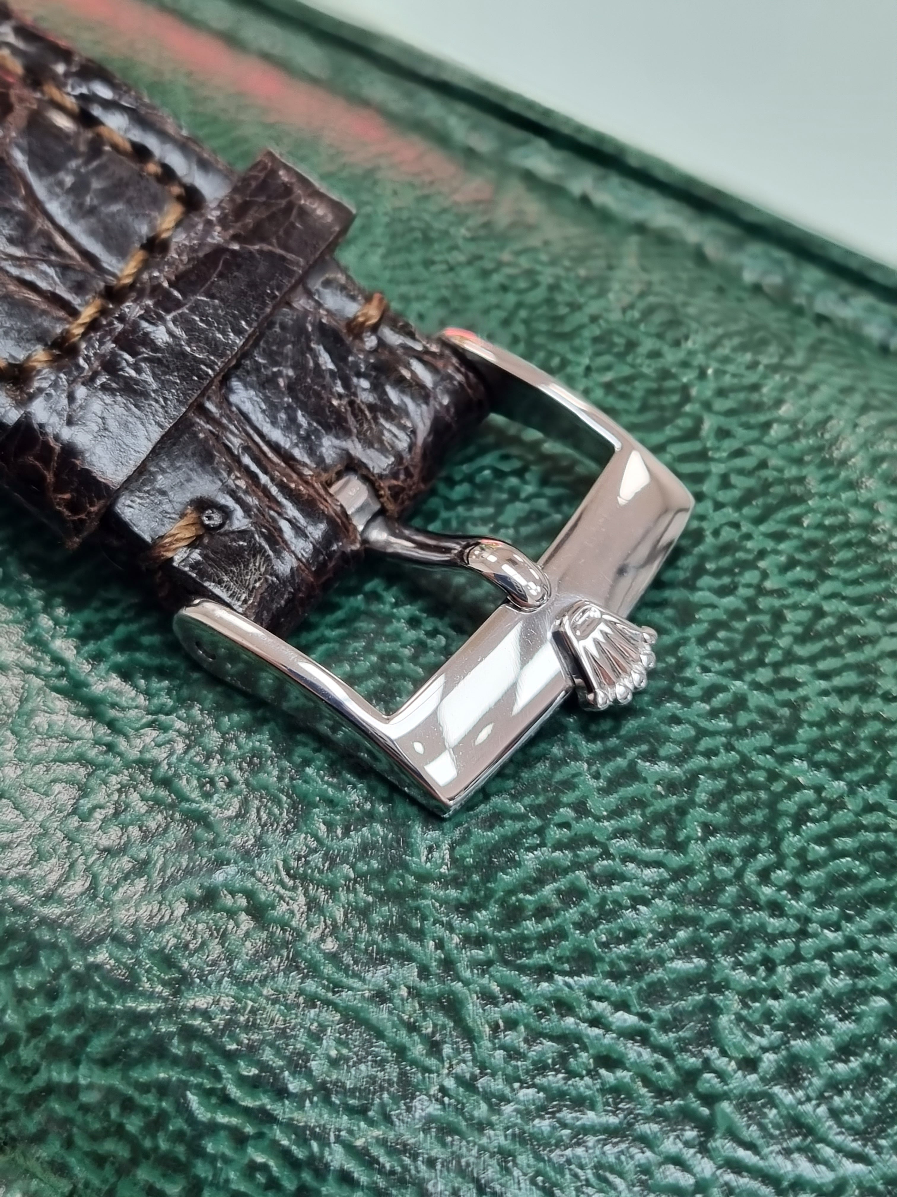 - Bracelet/Strap: Genuine Rolex brown leather strap