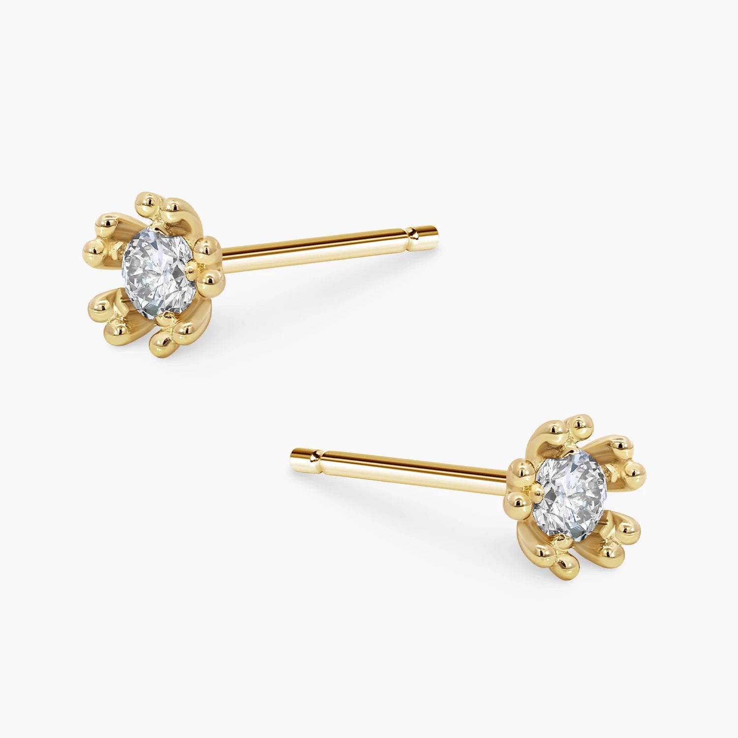 Petite studs in white and yellow gold, set with two natural diamonds totalling 0.13ct for a subtle yet radiant touch of everyday elegance.